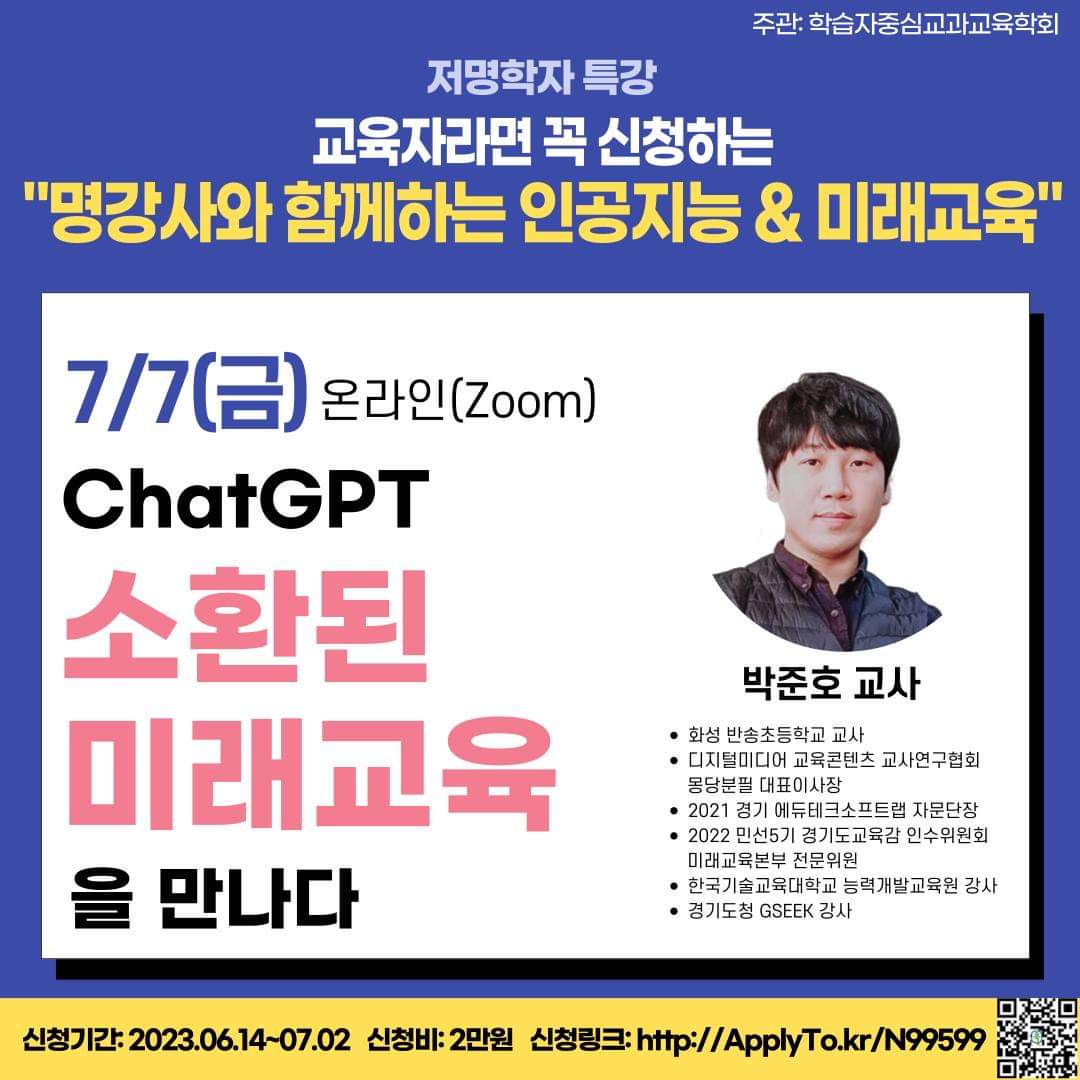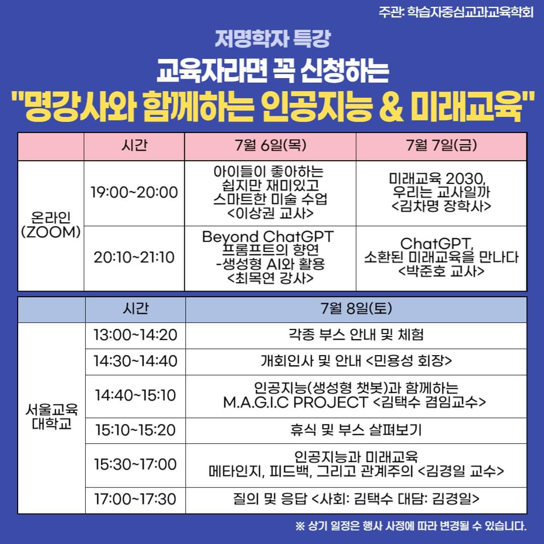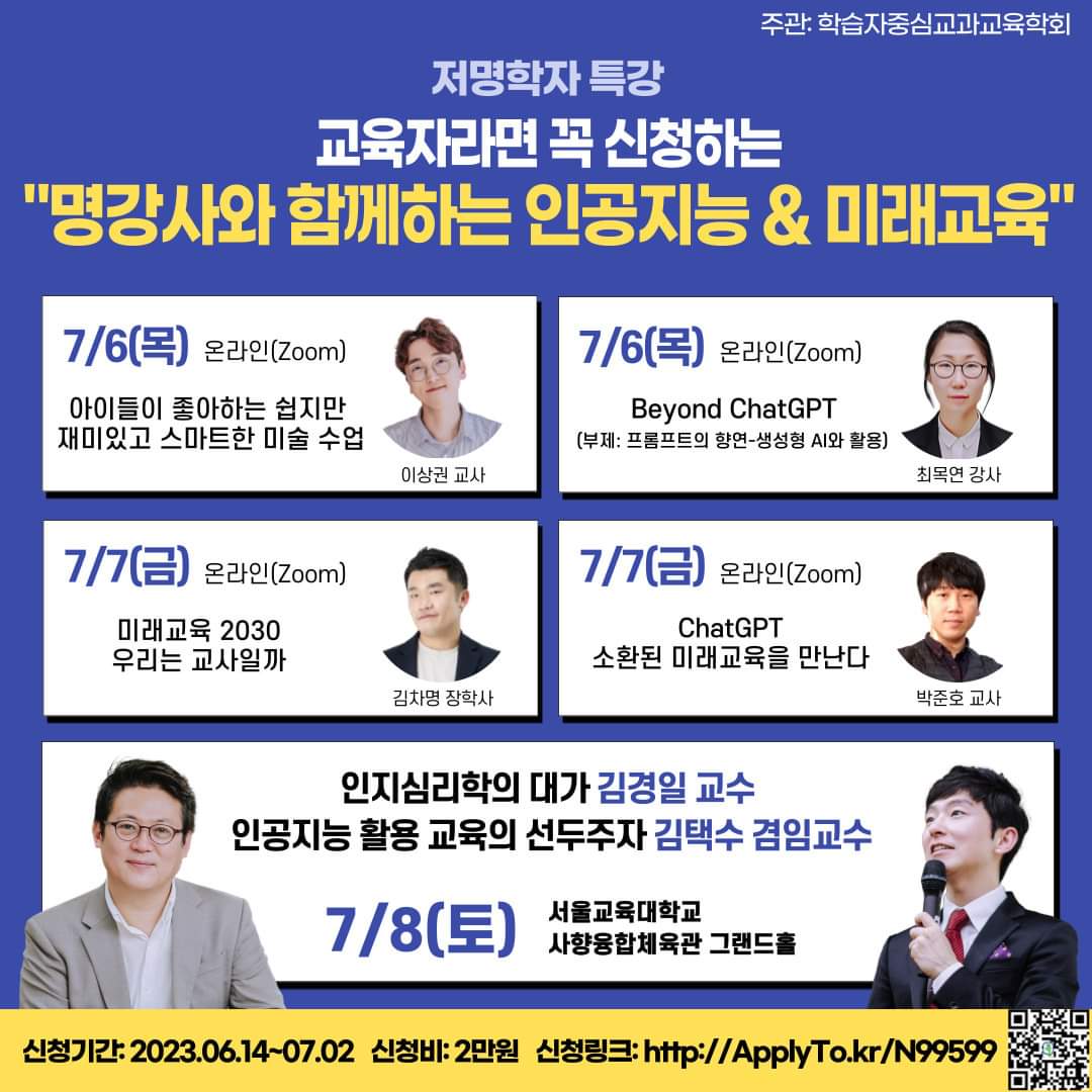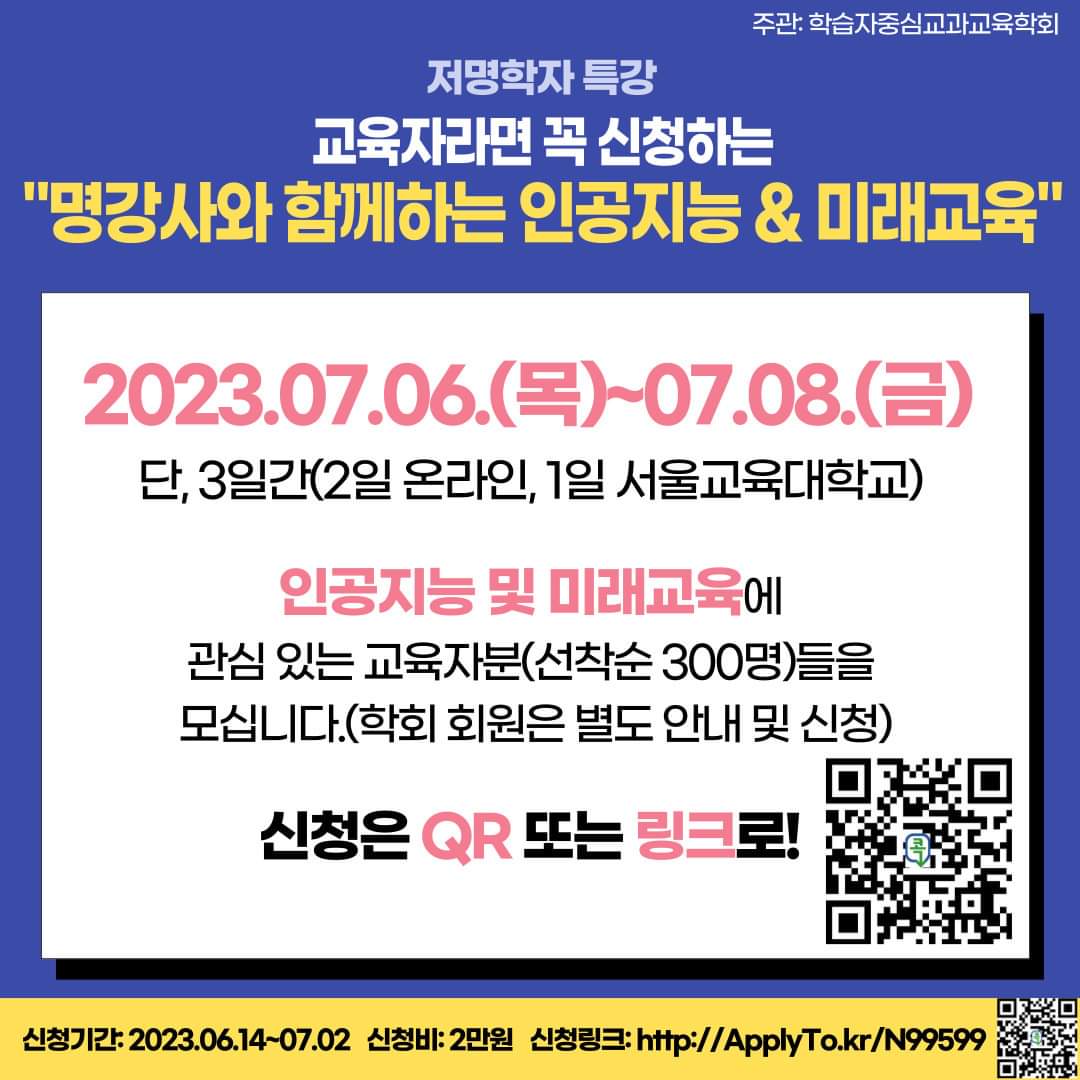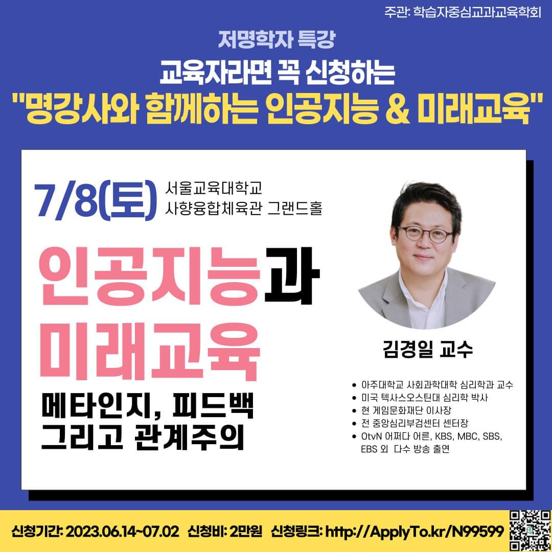 <학습자중심교과교육학회 주관-저명학자특강, ‘명강사들과 함께하는 인공지능과 미래교육’>