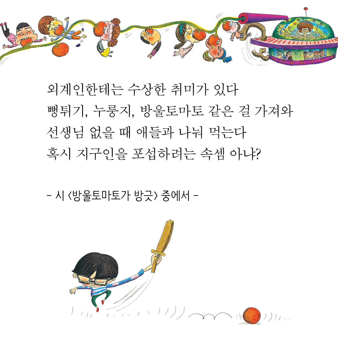 하나의 이야기 안에 아이들의 다양한 감정과 사건을 동시로 풀어 놓고 있습니다.