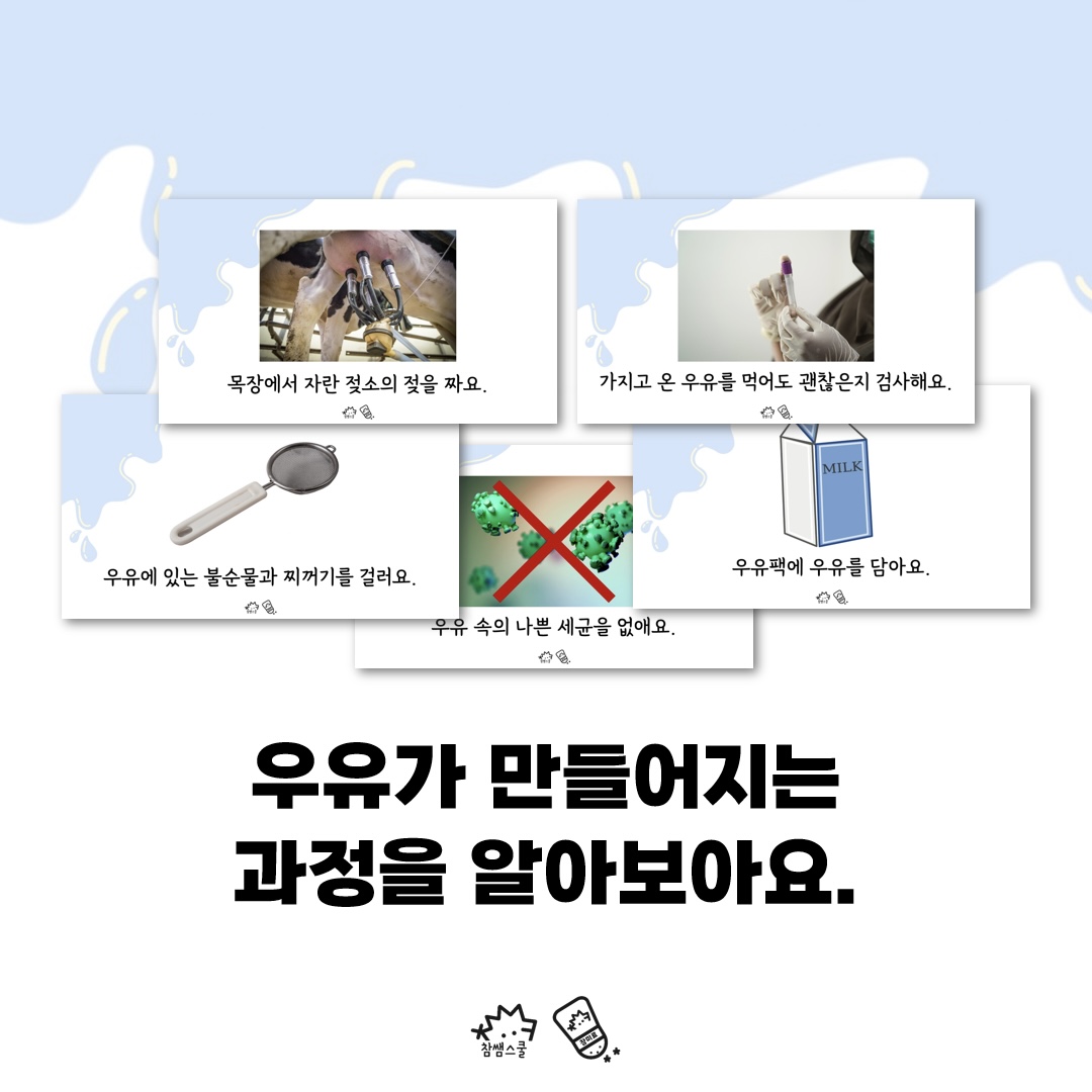 🥛 우유가 만들어지는 과정을 살펴보아요.