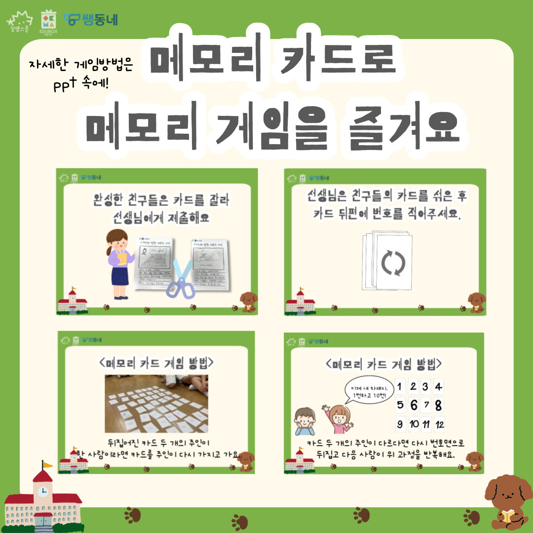 ❤️❤️2교시 - 메모리 카드를 활용하여 메모리 게임을 진행해요. (시간 흐름을 보며 한 판~두 판 진행!)