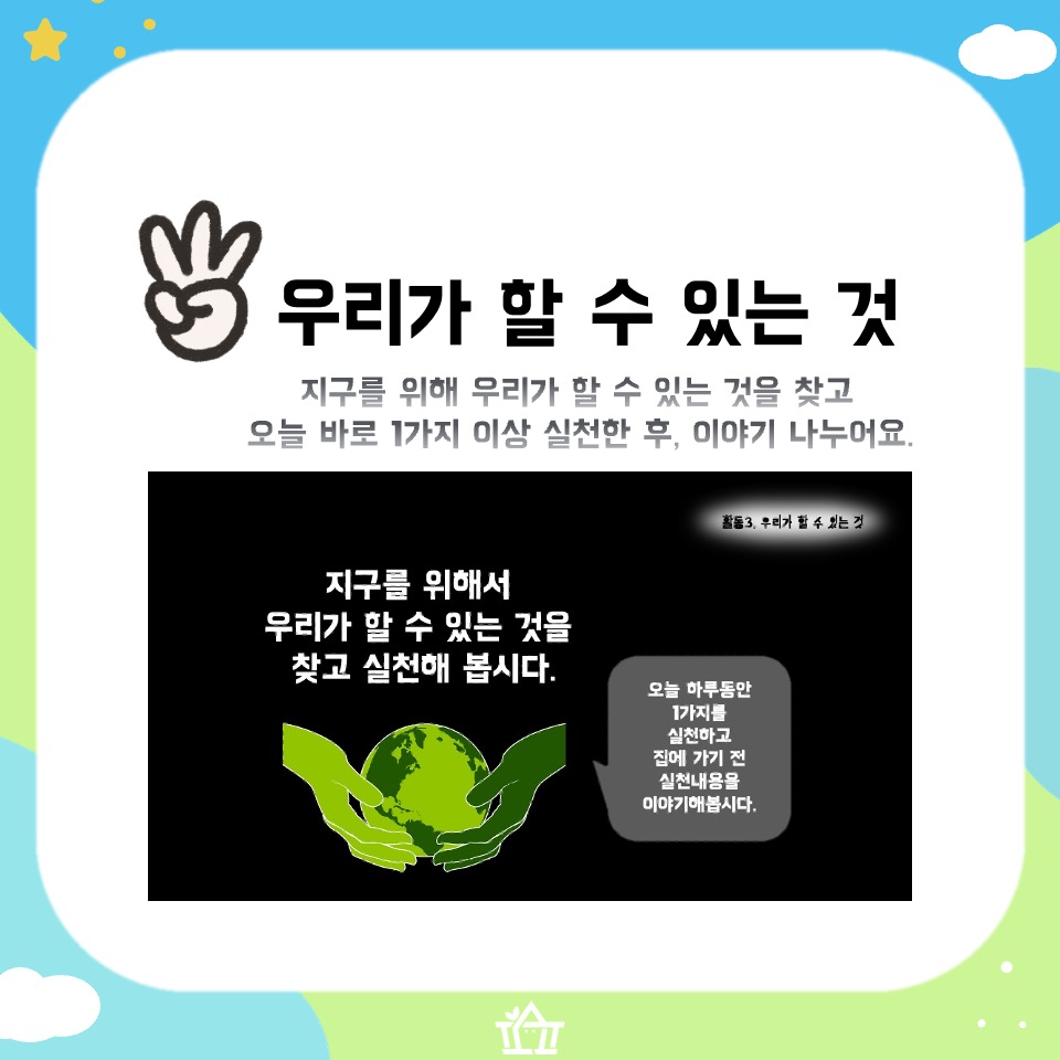 3️⃣ 지구를 위해 우리가 할 수 있는 것을 실천하고 이야기 나누어요!