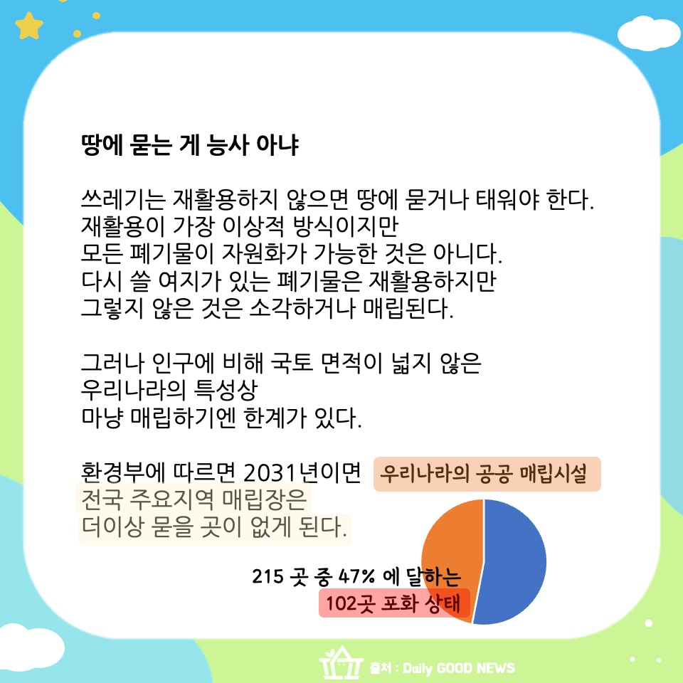 우리나라의 공공 매립지 215곳 중 102곳은 포화 상태라고 합니다.