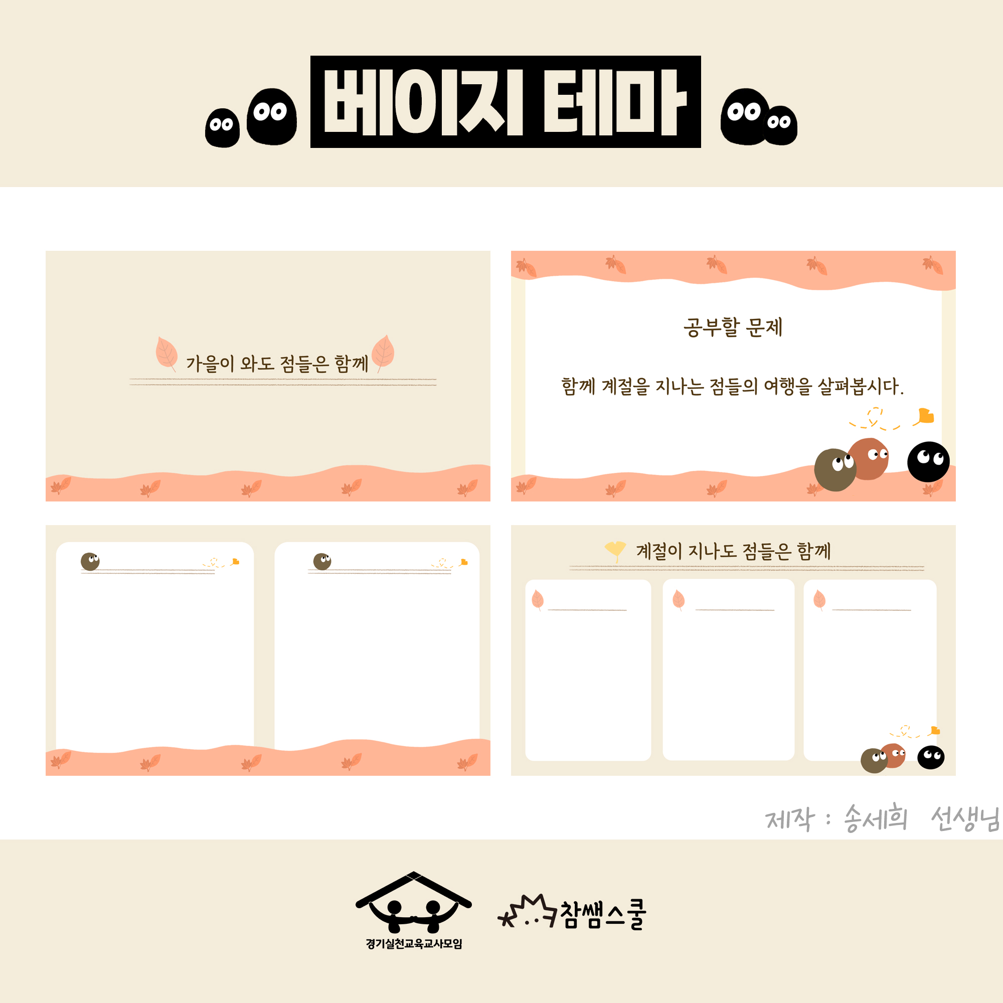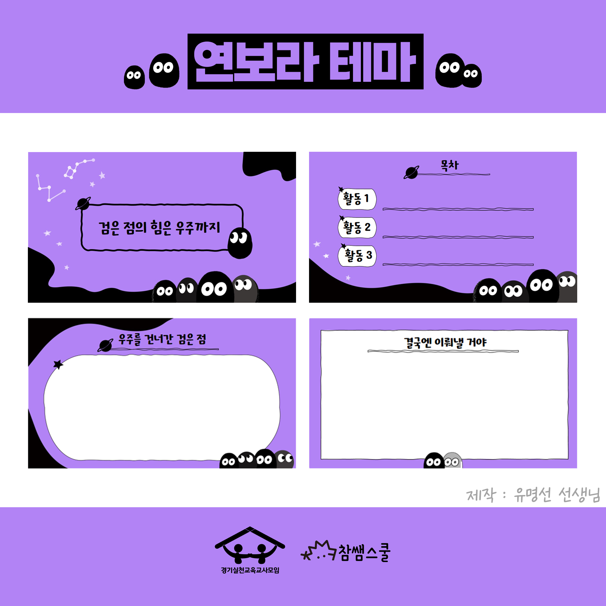 인디스쿨의 '방금말했어요' 선생님의 '점' 캐릭터를 바탕으로 PPT 템플릿을 만들었어요.