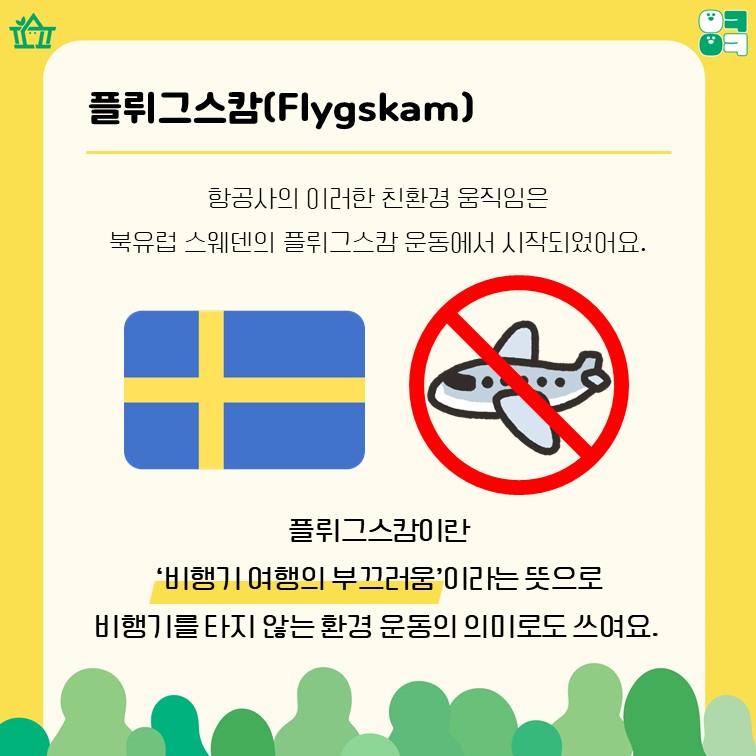 플뤼그스캄은 스웨덴에서 시작된 '비행기 여행 반대 운동'을 의미해요.