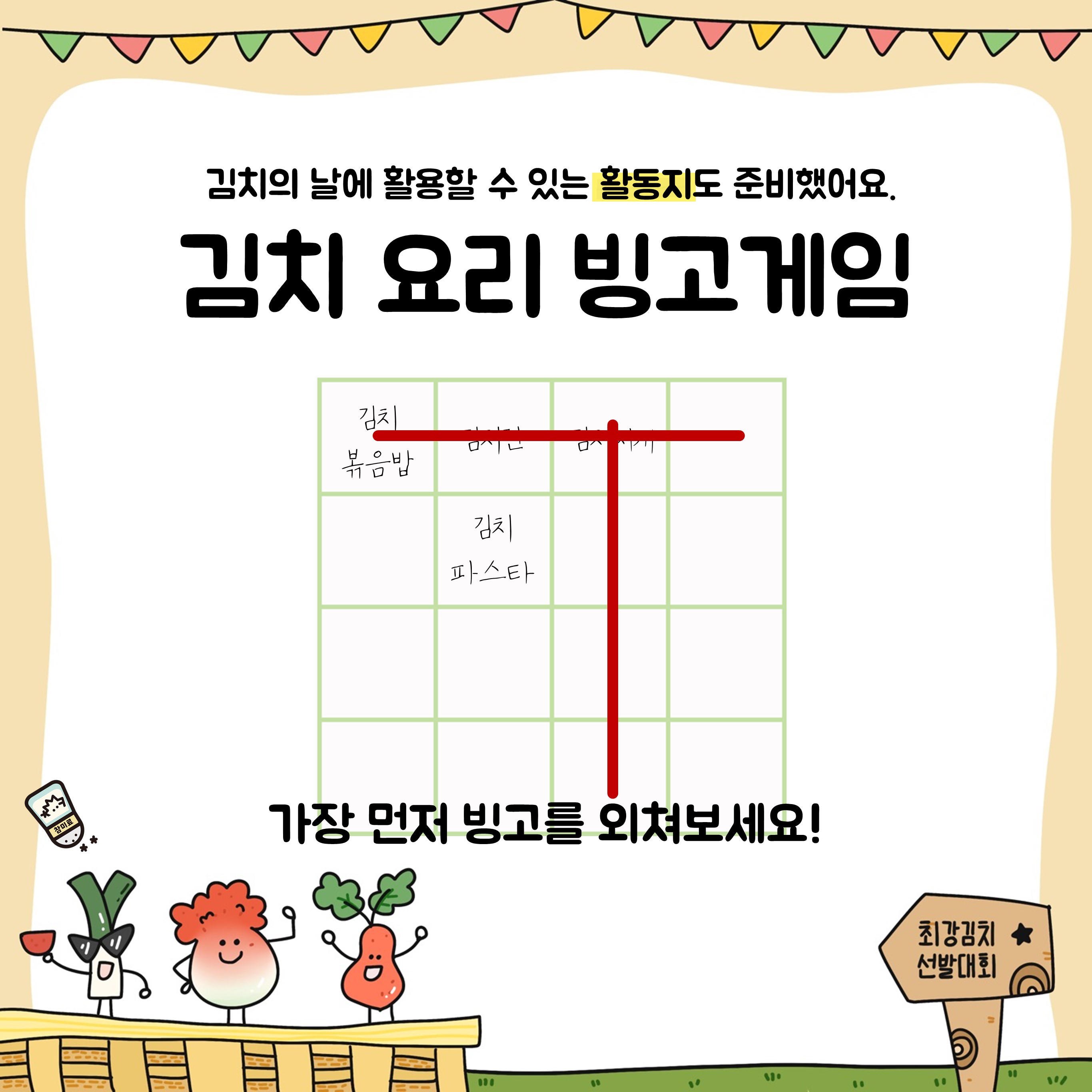 🥬🌶️ 김치의 날을 맞아 영양교육 활동지로 김치 요리 빙고 게임을 준비했어요. 저학년부터 고학년까지 간편하게 즐길 수 있어요.