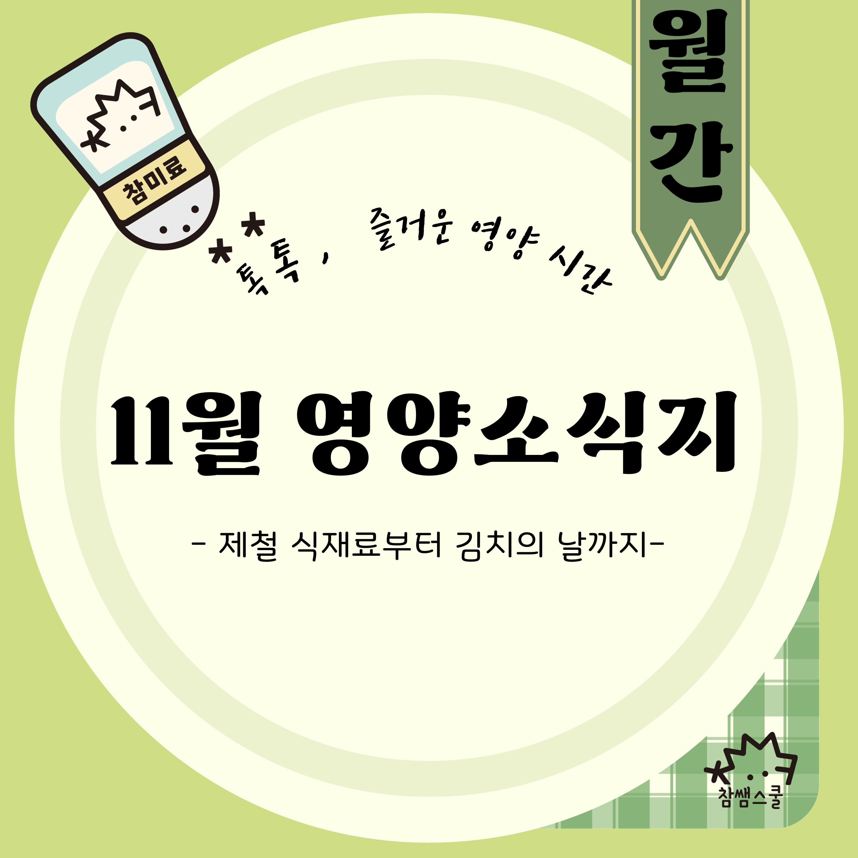 🧂톡톡(똑똑)~ 2023년 11월 영양소식지가 도착했습니다! 이달의 소식지에는 어떤 내용이 담겨있을까요?😆