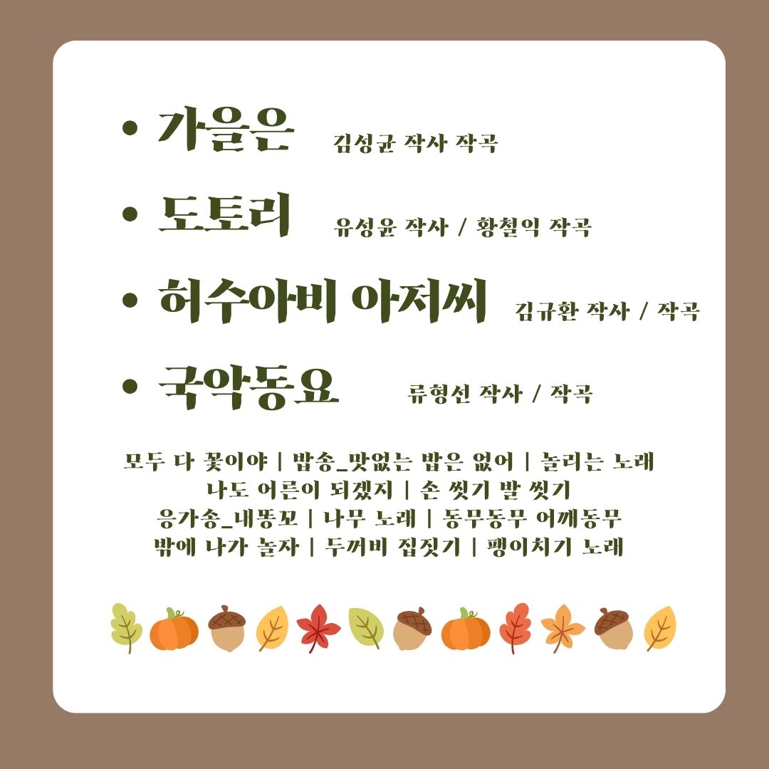 선생님들께서 알고 계신 가을에 어울리는 좋은 동요도 댓글로 추천해주세요!