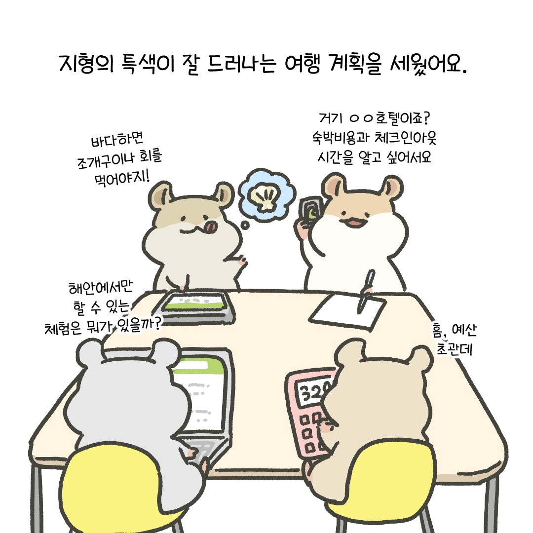 지형별 여행사를 세워 지형별 특징을 이해하고