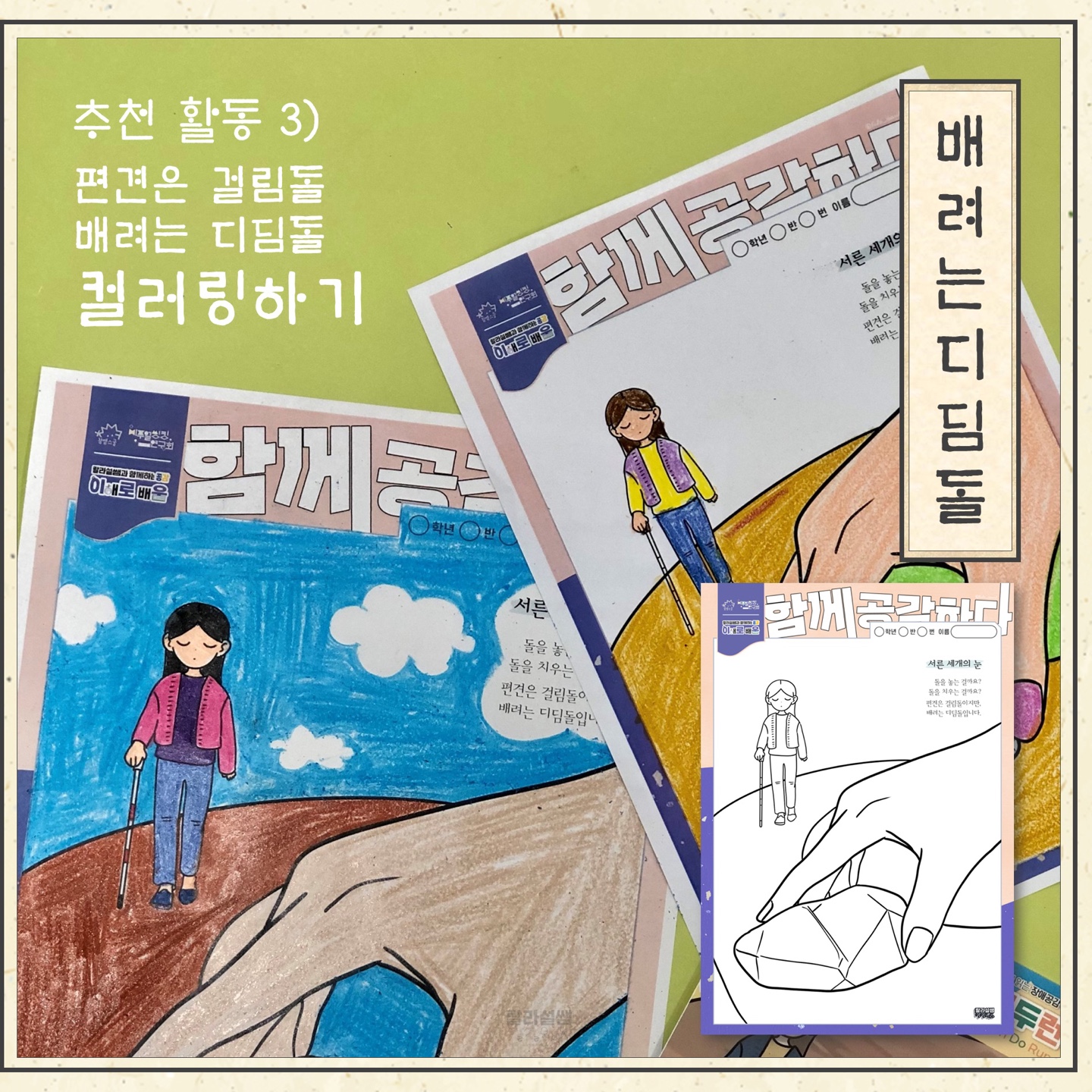 [3️⃣세 번째 활동] 편견은 걸림돌, 배려는 디딤돌 그림을 색칠해요.