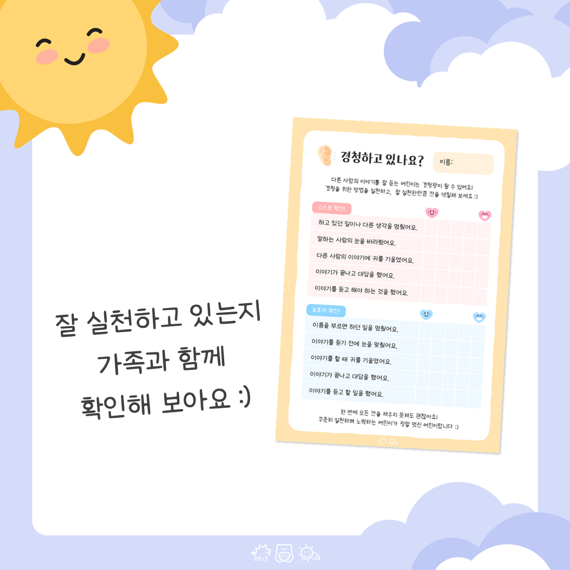 가정과 함께 경청 연습을 해보는 것은 어떨까요?🤗