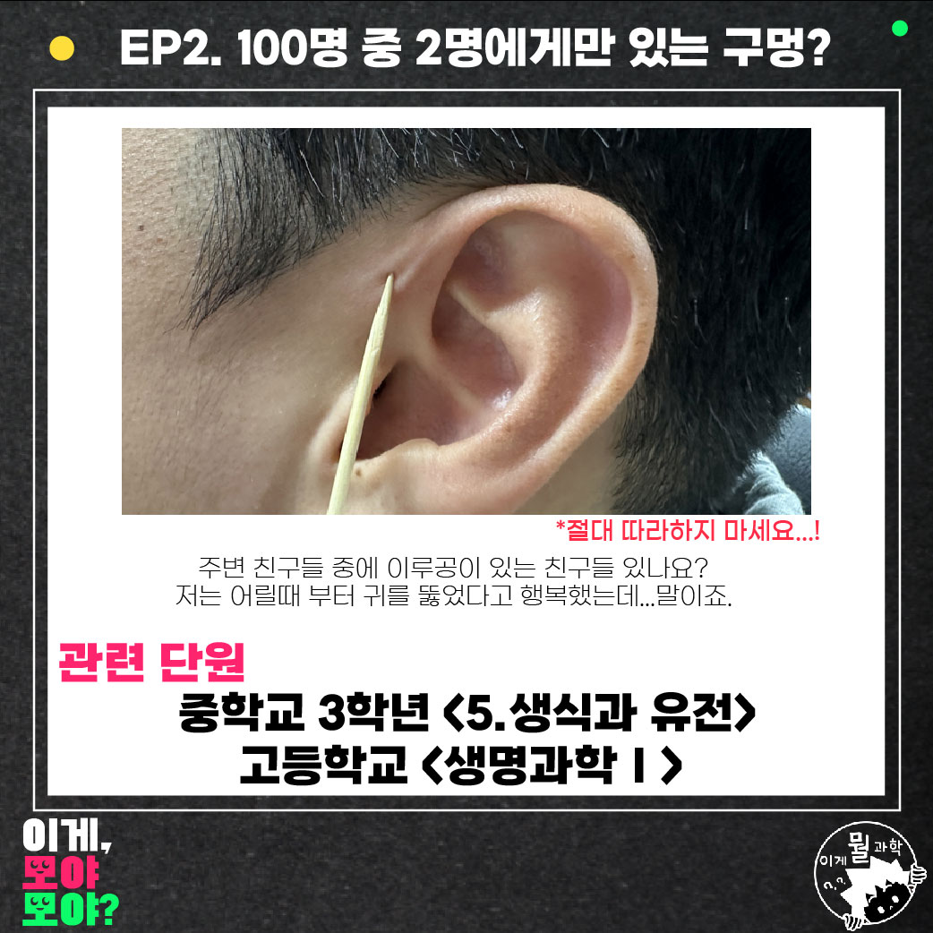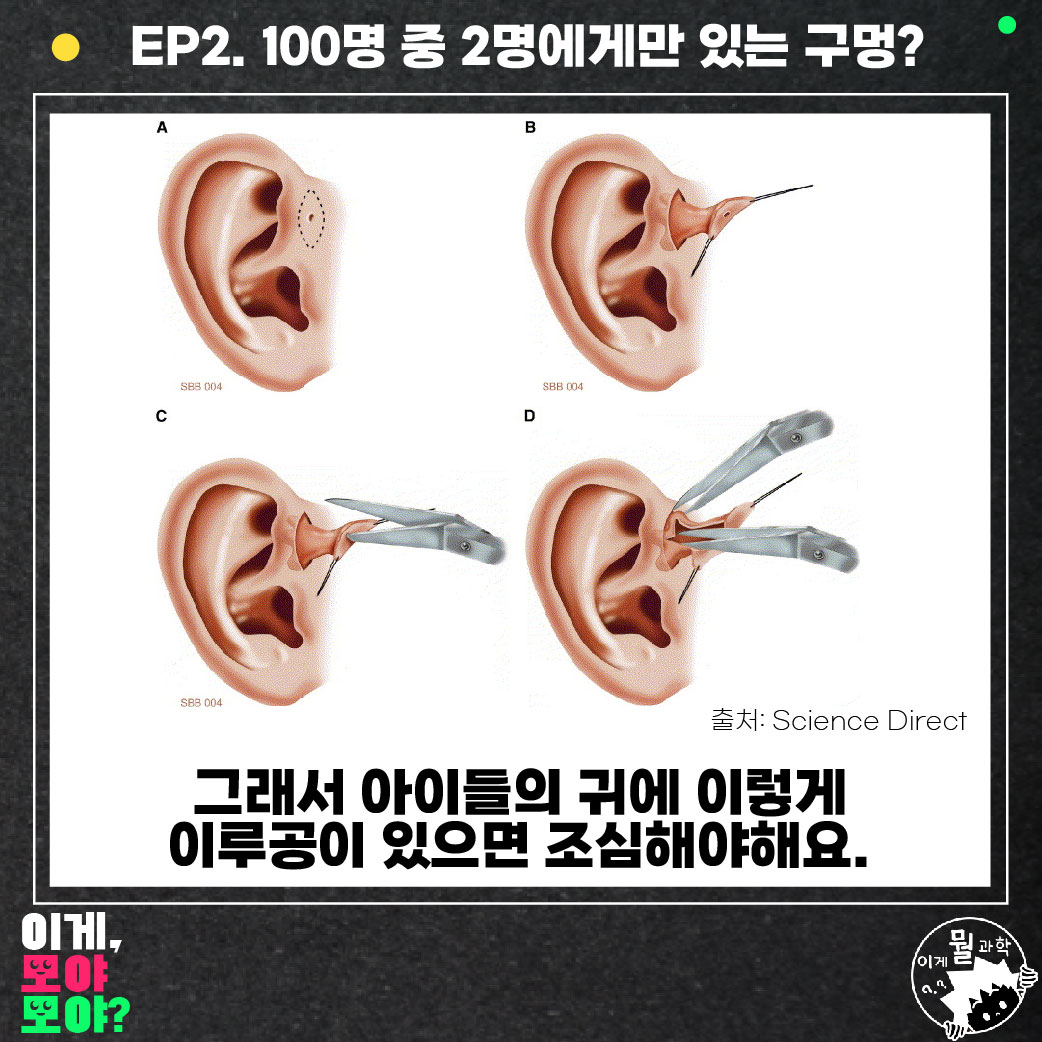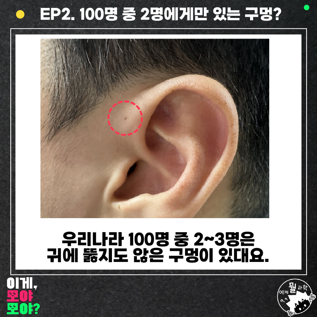저는 어릴 적부터 귀에 구멍이 있는데요. 귀를 뚫지도 않았는데 구멍이 있다며 엄청 좋아했었죠. 그러다 문득 이게 무엇인지 다큰 성인이 되어서 조사를 해봤는데, 글쎄 100명 중 2~3명에게 있다는 '선천성 이루공'이라고 하더라고요.