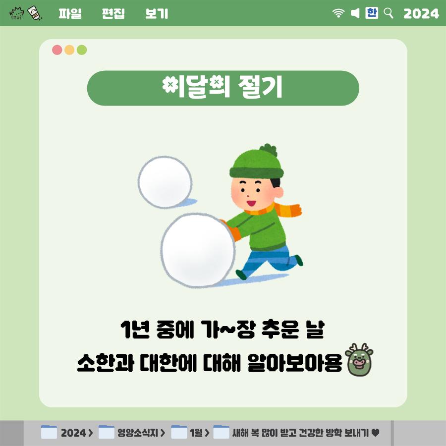 🥶 으으 추워~! 1년 중 가장 추운 날! 이 달의 절기, 소한과 대한을 소개해용 🦕