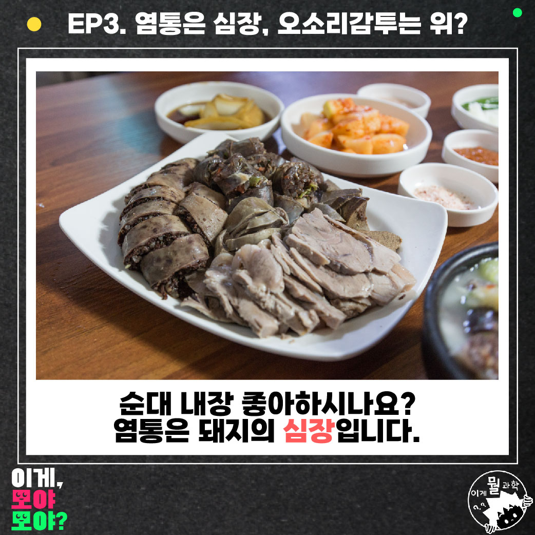 여러분들은 순대 내장 좋아하시나요? 저는 순대 내장 중에서 염통을 무지 좋아하는데요, 염통은 돼지의 심장을 말해요. 꼬치구이집에 가서 먹은 염통 꼬치도 닭의 심장을 말하는 거죠.