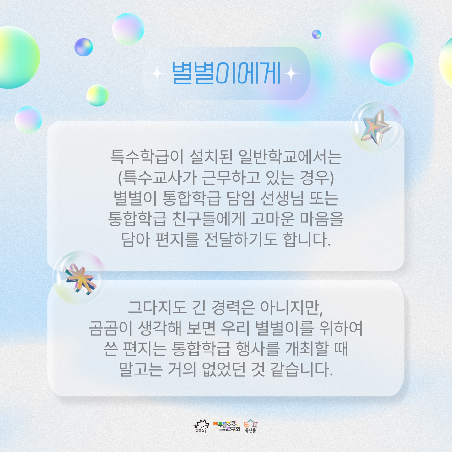 (*이 카드뉴스에서는 특수교육대상학생을 별별이라고 칭했음을 안내합니다.)