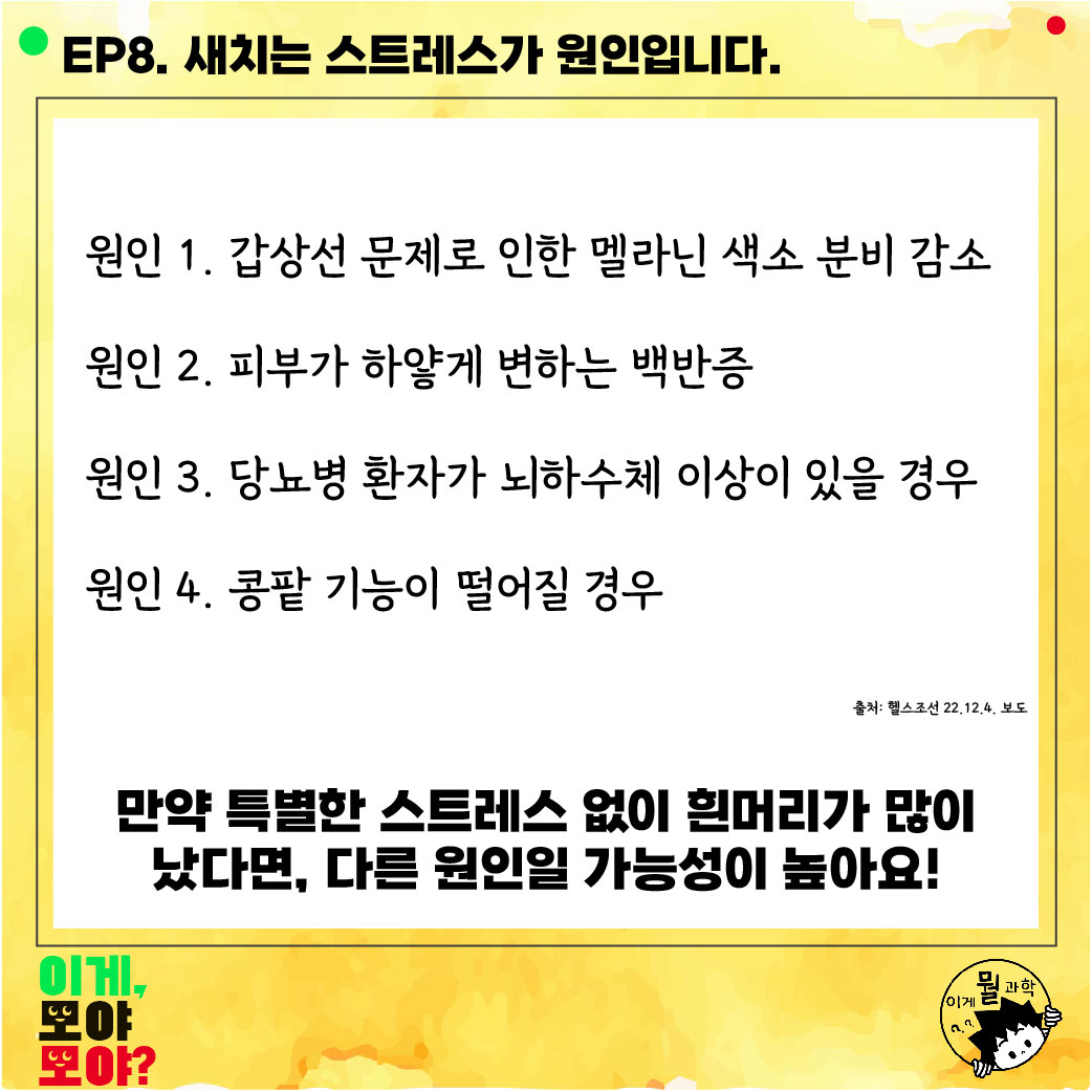 따라서 청소년기에 흰머리가 많이 나는 경우에도 2~6년전 극심한 스트레스가