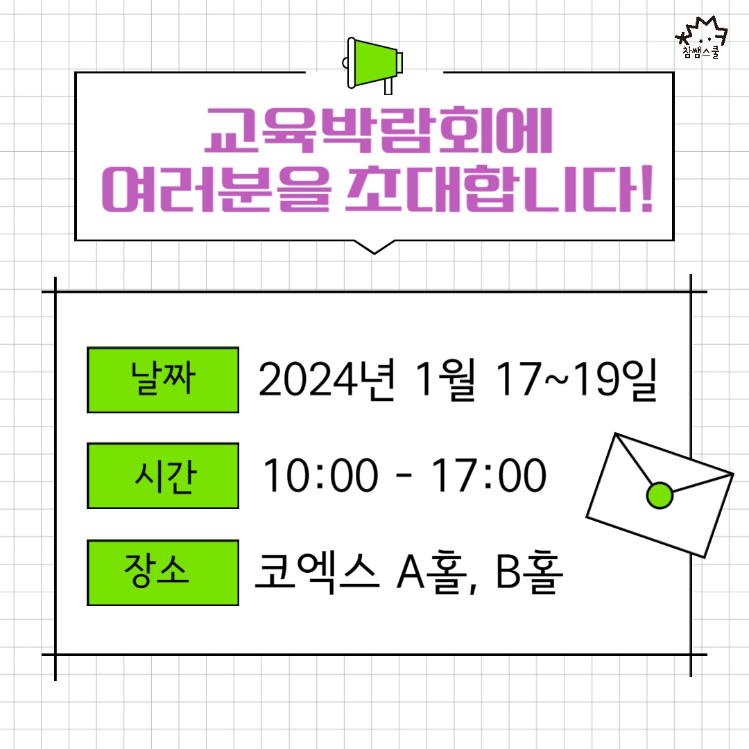 코엑스에서 열리는 대한민국 교육박람회에 놀러오세요🥳