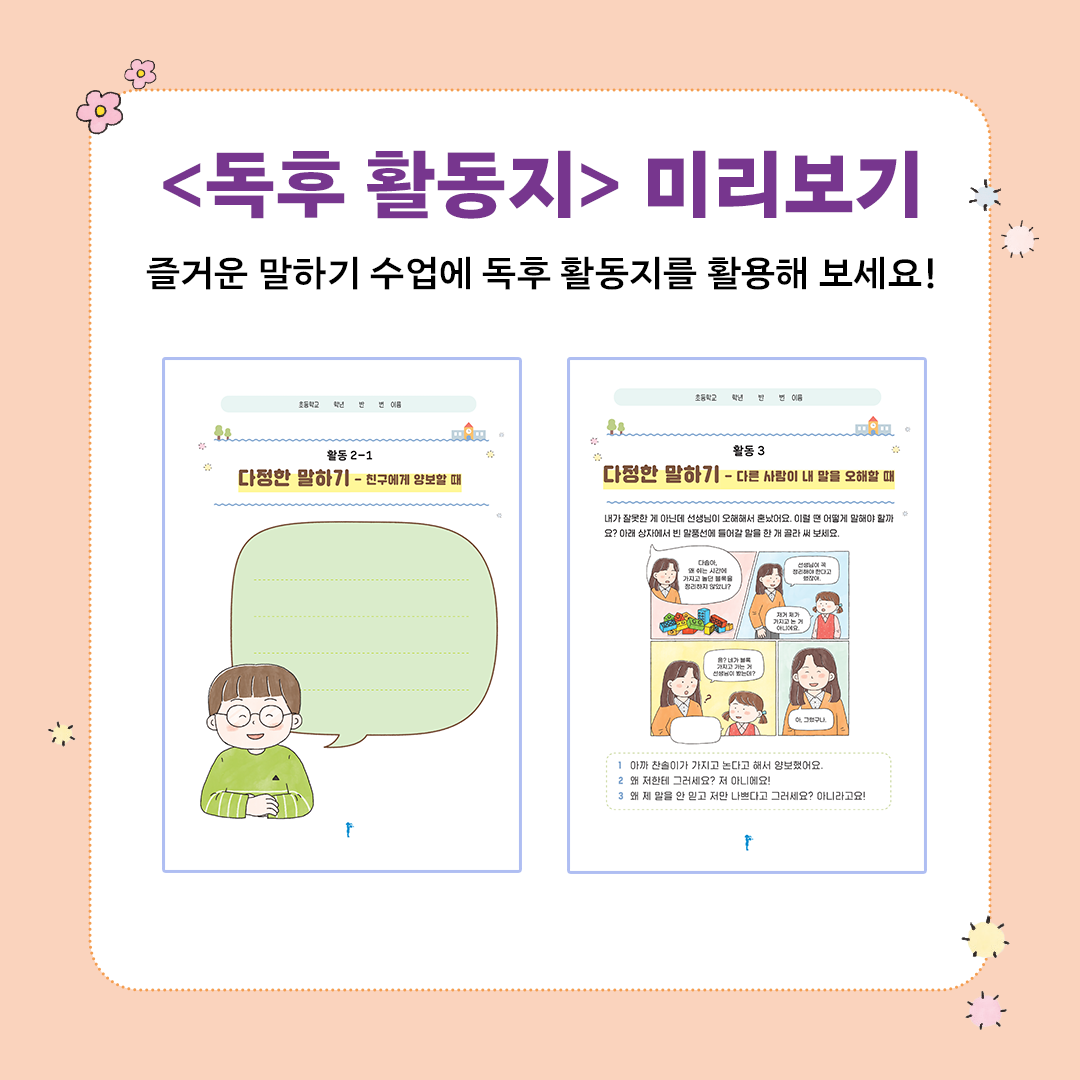 독후 활동지를 활용해서 즐거운 말하기 수업을 만들어보시길 바라요.