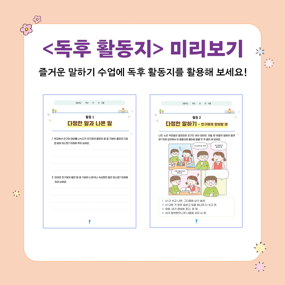 독후 활동지를 활용해서 즐거운 말하기 수업을 만들어보시길 바라요.