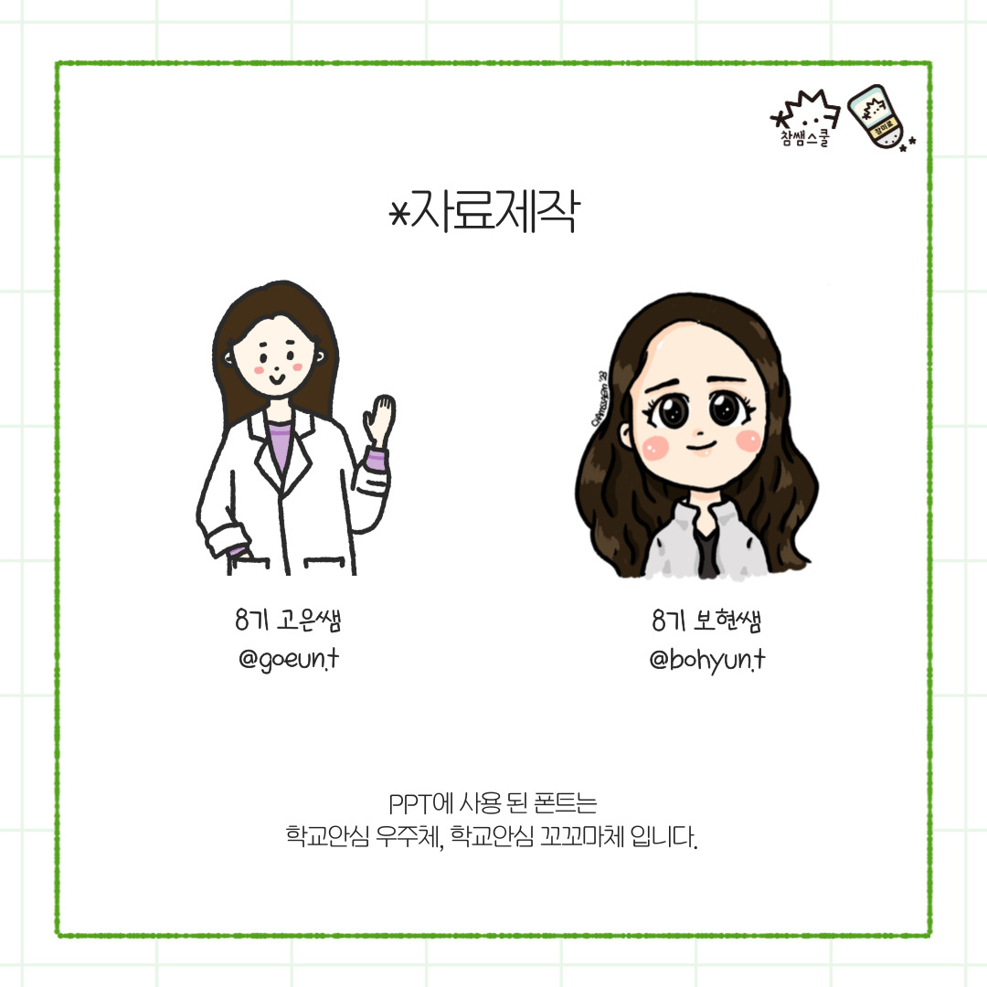 참쌤스쿨 8기 고보현(@bohyun.t ), 8기 류고은(@goeun.t ) 선생님이 제작하였습니다.