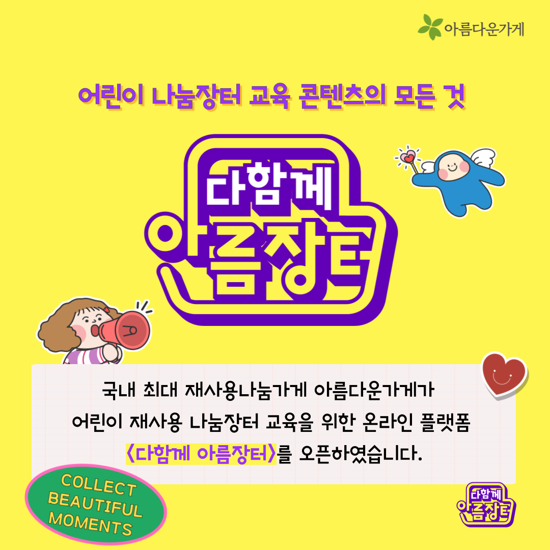 국내 최대 재사용 나눔가게 아름다운가게의 노하우와 가치를 담은 어린이 나눔장터 교육 콘텐츠 플랫폼 <다함께 아름장터>를 오픈합니다🎊