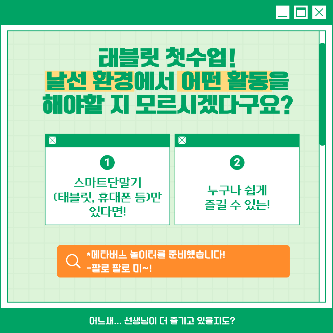 (어쩌면, 선생님이 더 즐기고 계실지도 모릅니다!)