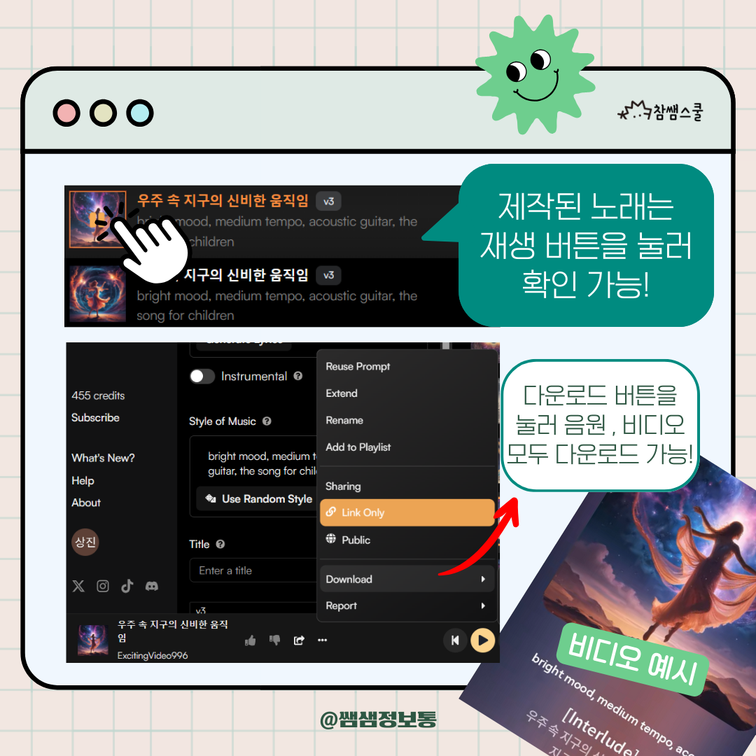 학습한 내용을 아주 간편하게 노래로 만들 수 있어요!
