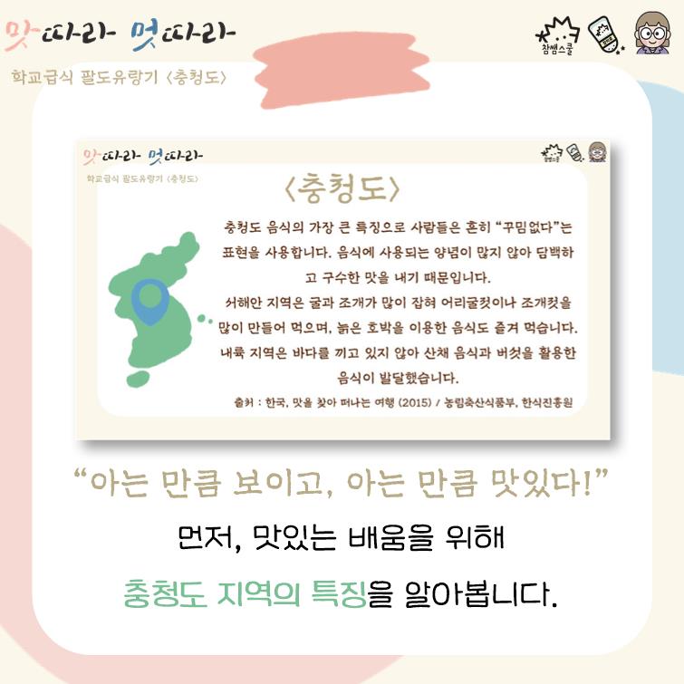 🔍충청도 지역의 특징을 알아보아요.