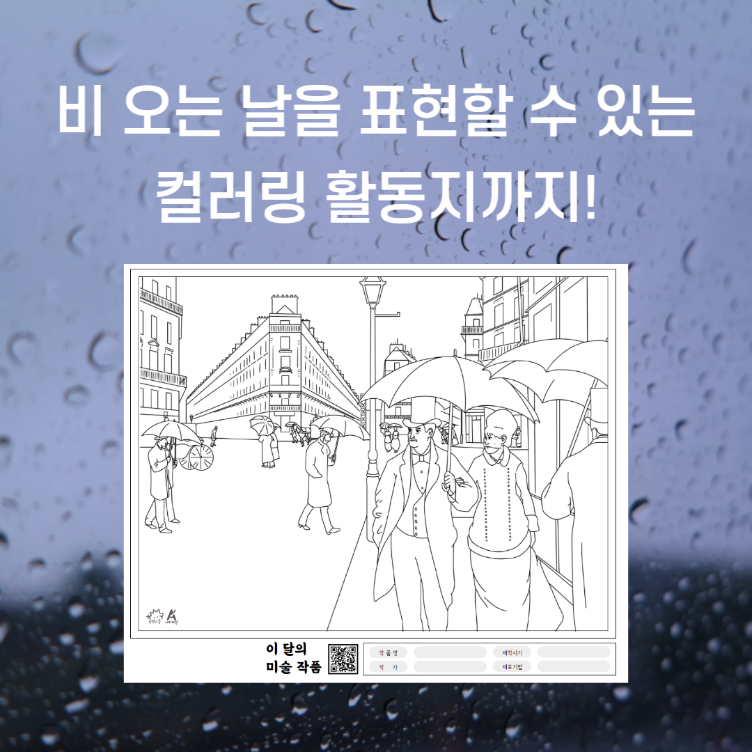 이번 달 컬러링 활동지는 비 오는 거리를 색칠해 볼 수 있어요🖌