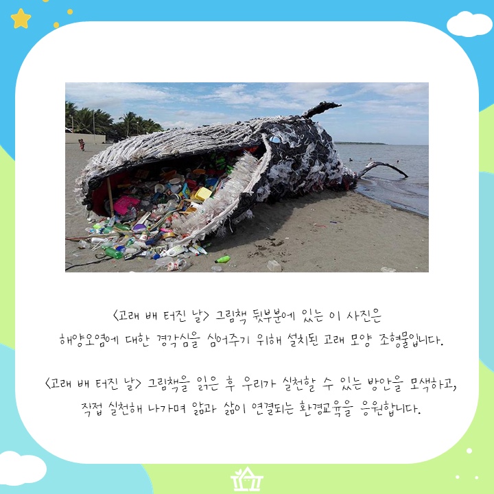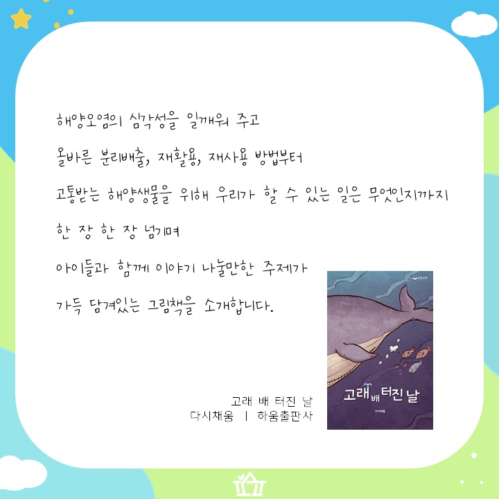 👉우리에게 익숙한 동화 피노키오의 등장인물을 모티브 한 그림책! 👉해양오염의 심각성을 일깨워주고, 올바른 분리배출, 재활용, 재사용 방법부터 고통받는 해양생물을 위해 우리가 할 수 있는 일은 무엇인지 고민하게 만드는 그림책! 👉한 장 한 장 넘기며 아이들과 함께 이야기 나눌만한 주제가 가득 담겨 있는 그림책을 소개합니다