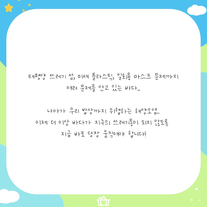 이제 더 이상 바다가 지구의 쓰레기통이 되지 않도록