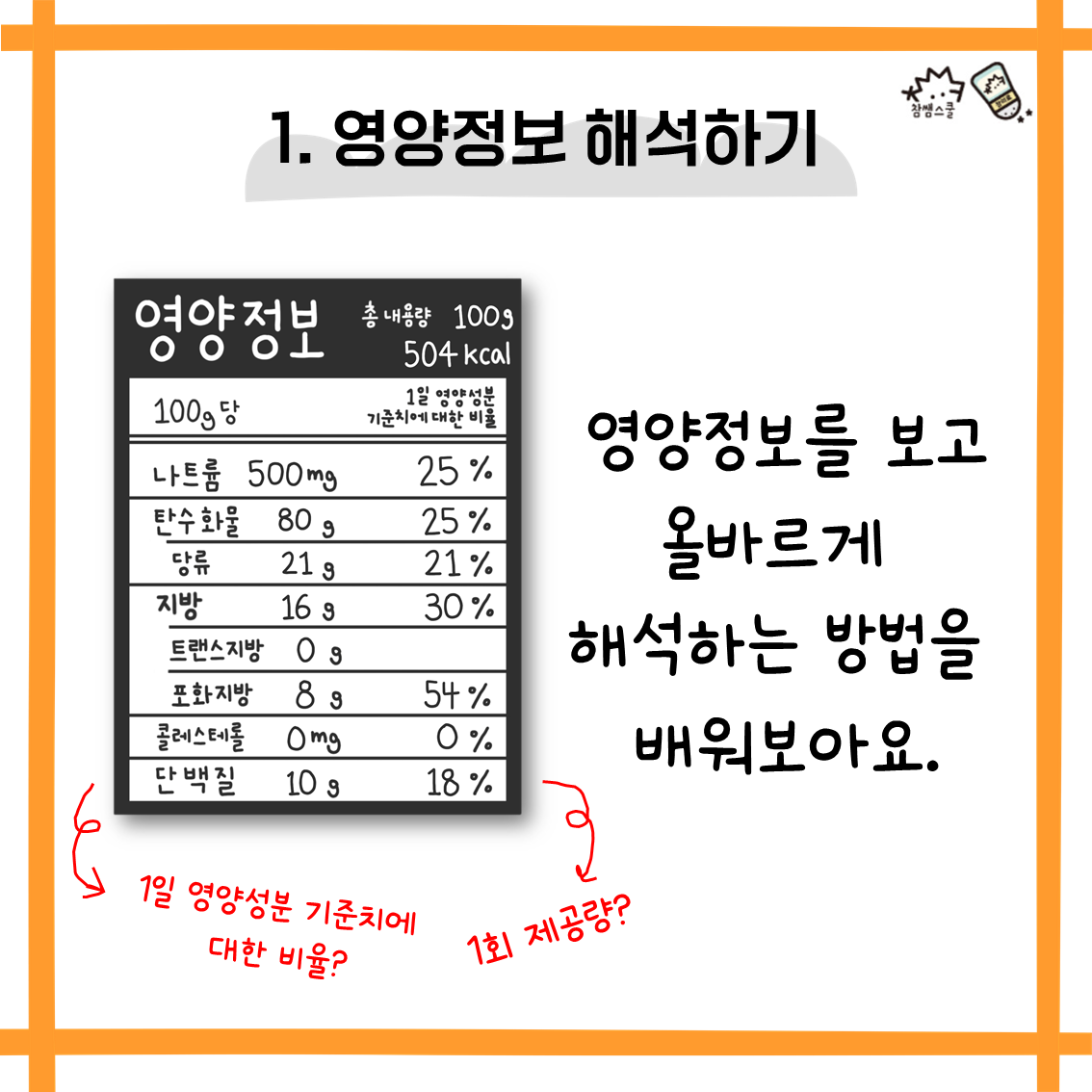 단백질, 열량, 당류, 포화지방 기준을 배우고 나면