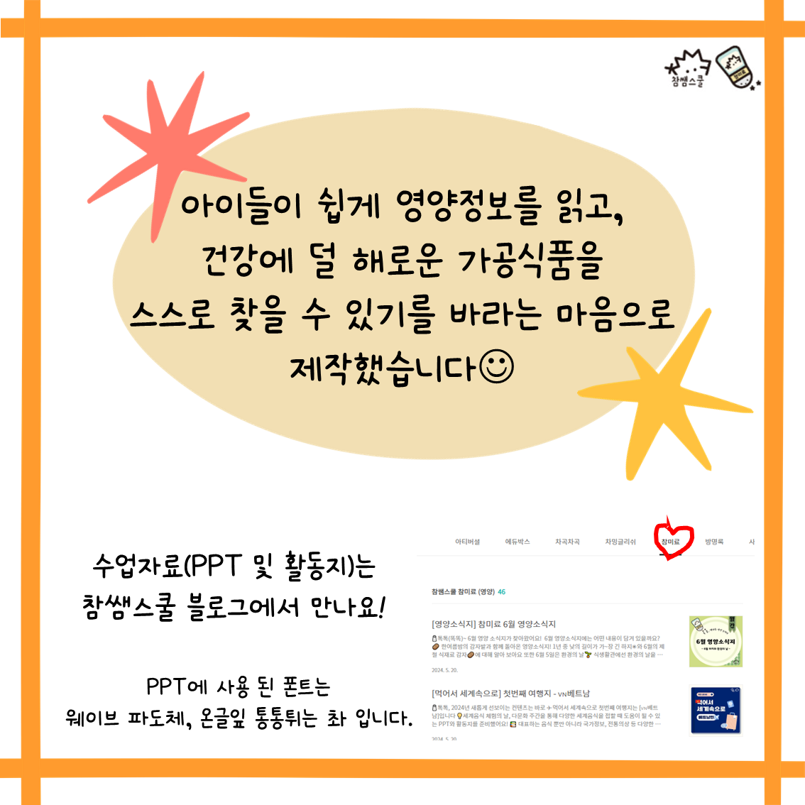 * 본 수업자료와 카드뉴스는 참쌤스쿨 9기 원주현선생님이 제작하였습니다.