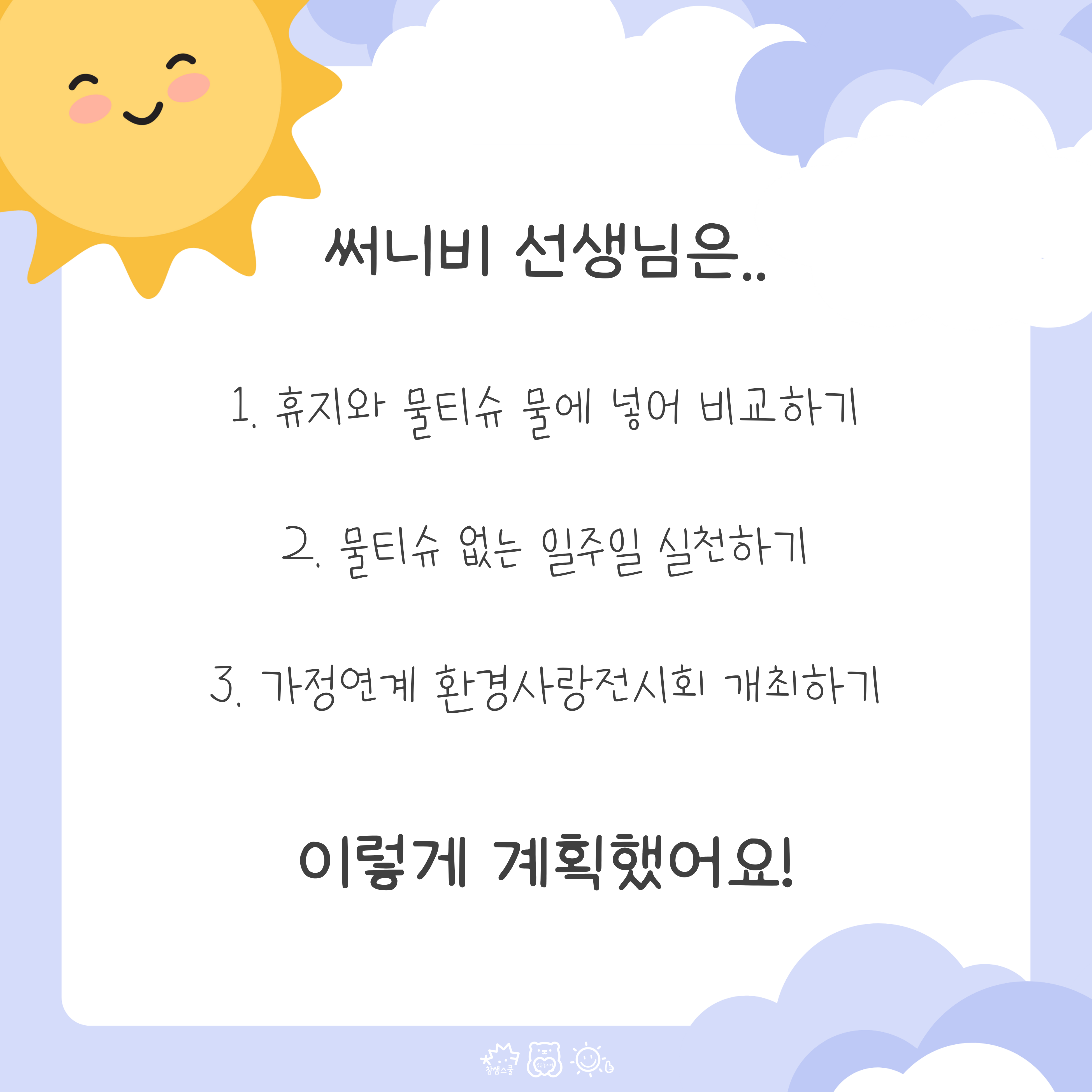 물티슈 없는 날을 계획해 실천해볼까요?😉