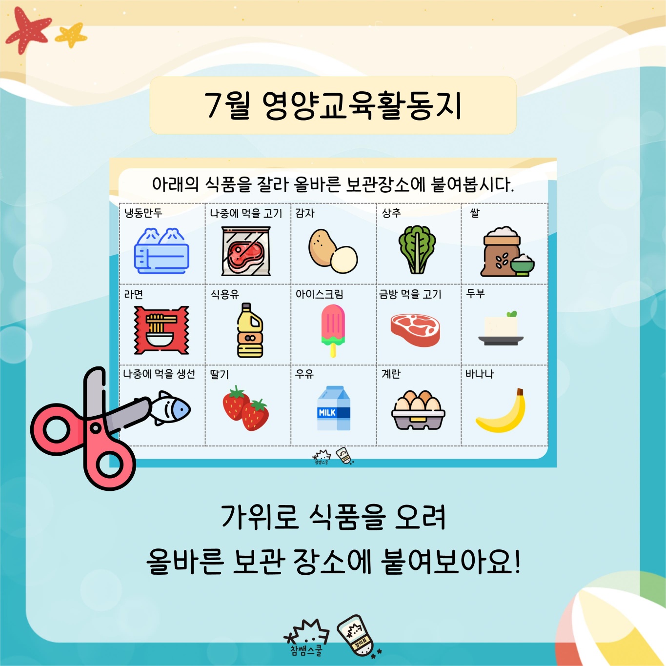 7월의 영양교육활동지는 올바른 식품보관 활동지!