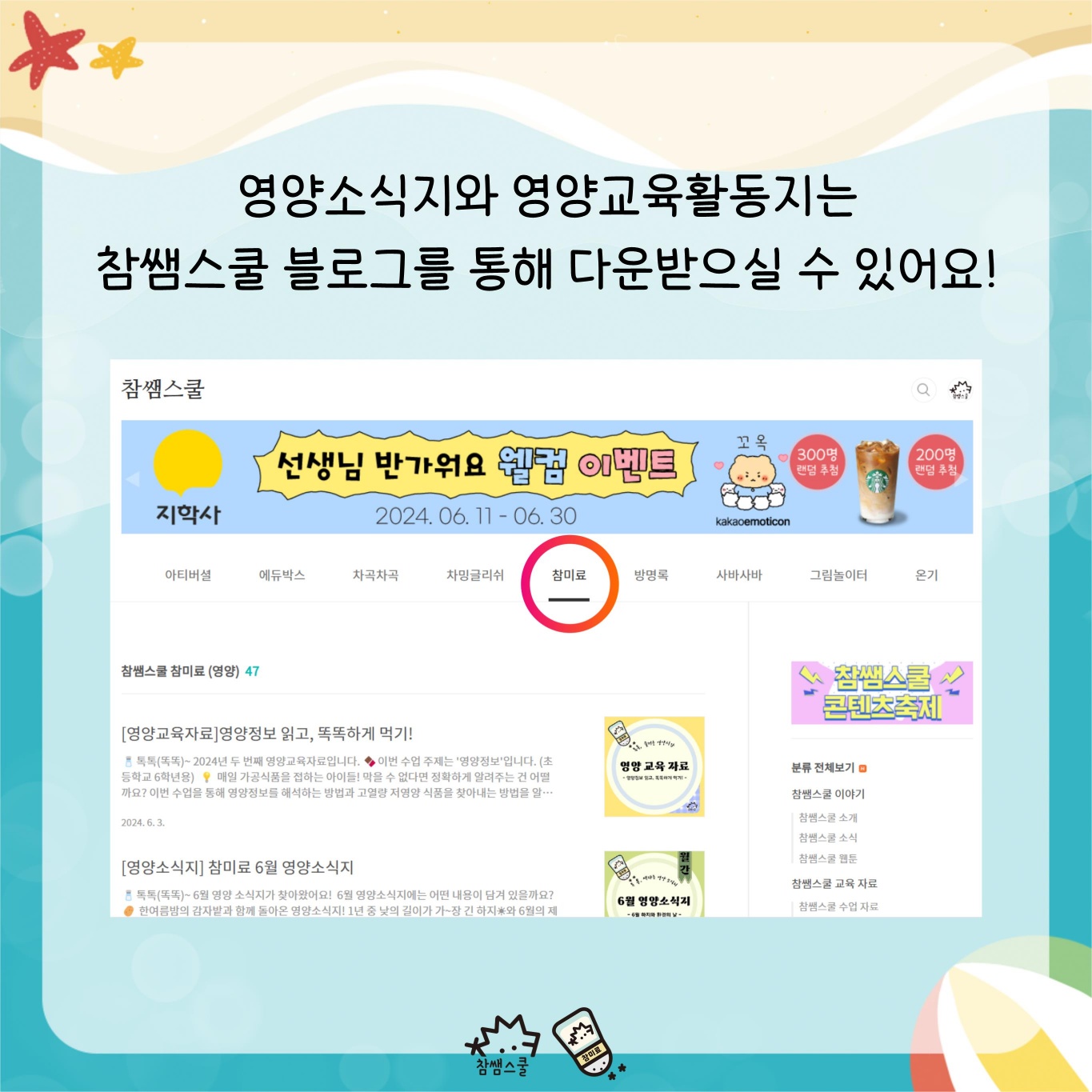 *영양소식지와 영양교육 활동지는 참쌤스쿨 블로그에서 다운 받으실 수 있어요.