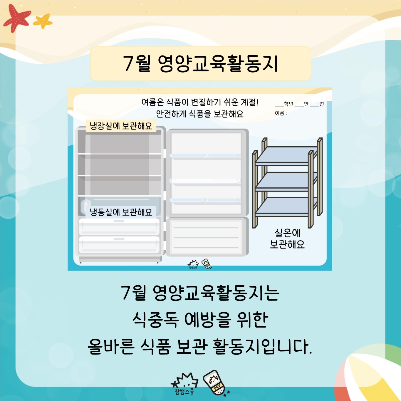 7월의 영양교육활동지는 올바른 식품보관 활동지!