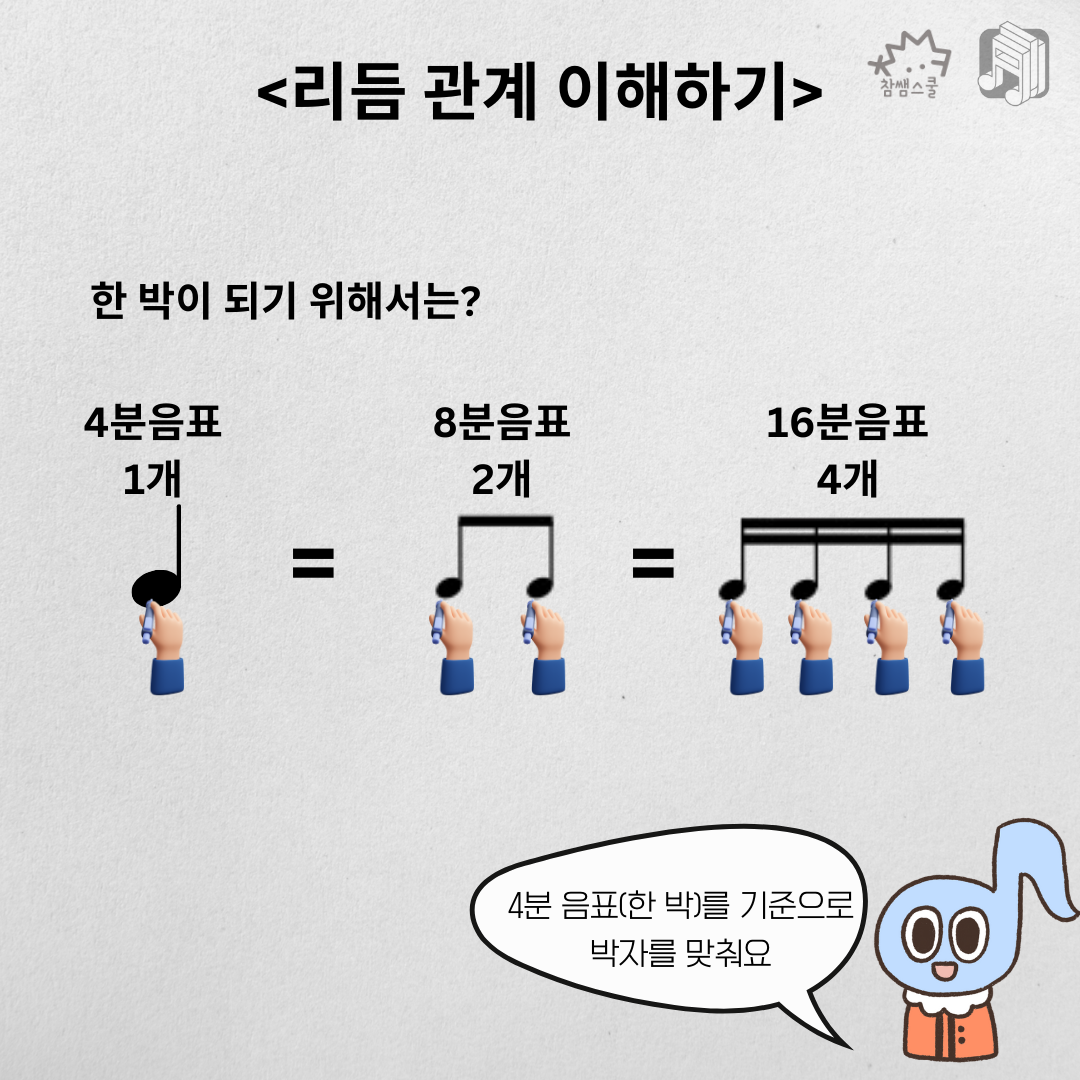 🤔4분 음표, 8분 음표, 16분 음표 사이의 관계를 학생들이 잘 파악하고 있나요?