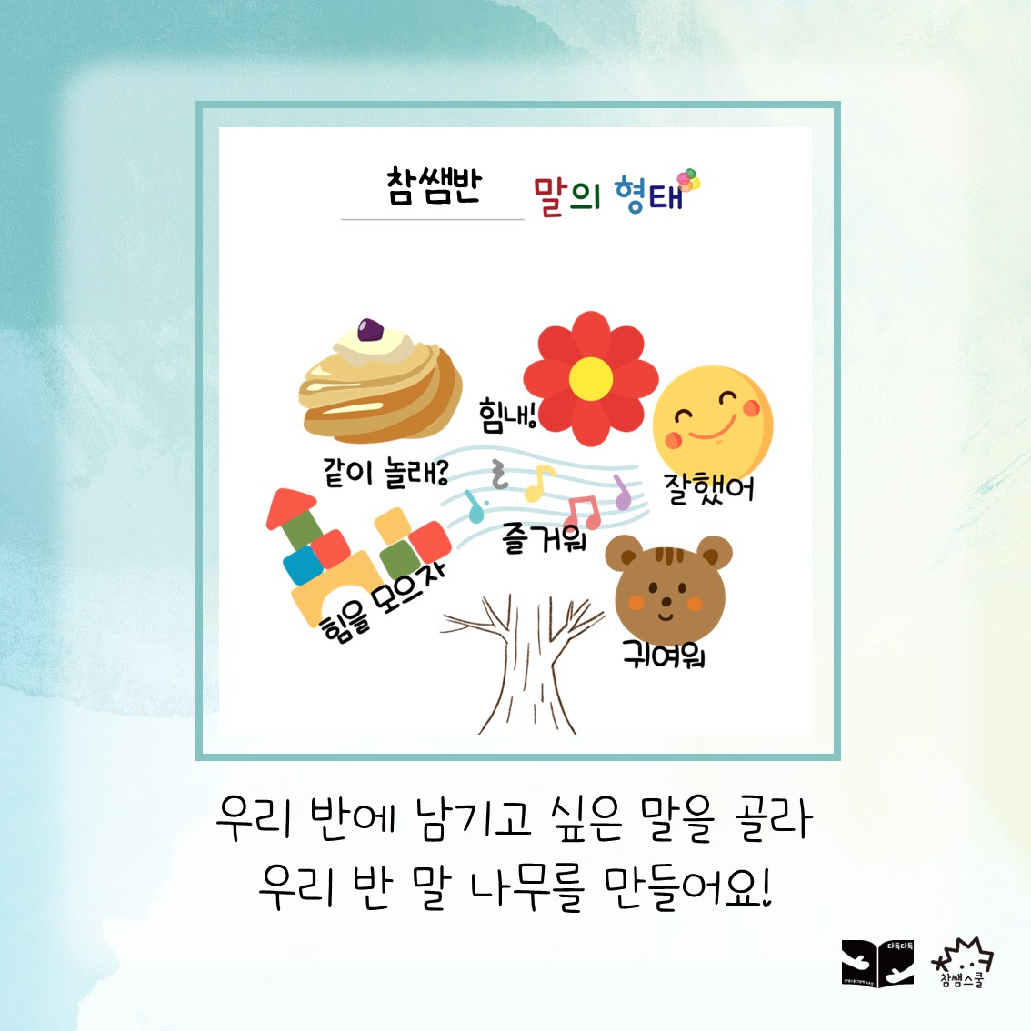 지금껏 우리 교실에는 어떤 말로 가득차고 있는지 돌아보고 앞으로 어떤 말로 가득채울지 이야기 나눠보는 시간 가져보는 건 어떨까요?
