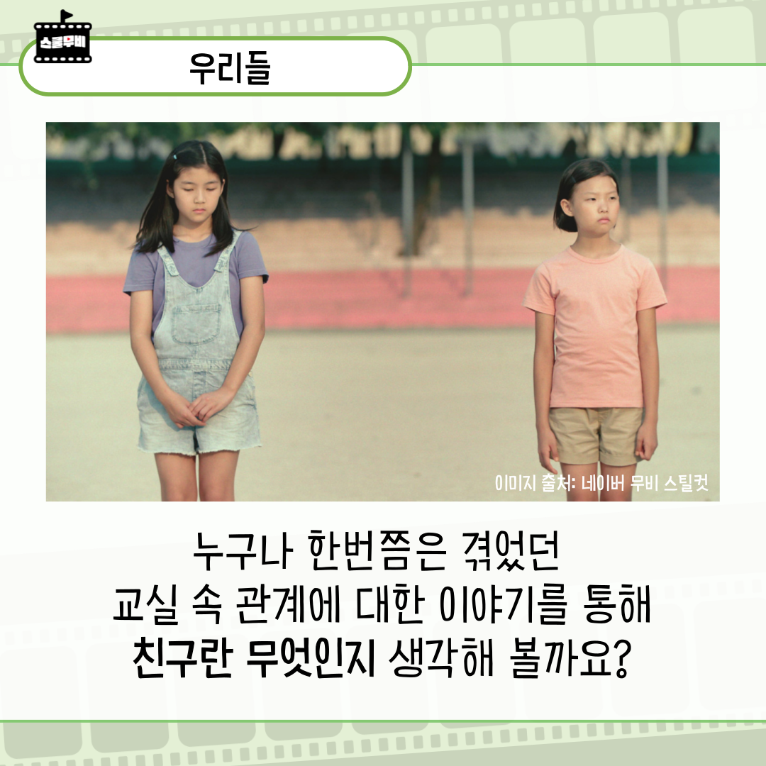 친구들과도 익숙해지고, 방학을 기다리며 들뜬 우리 아이들과 함께 볼 영화는 <우리들> 입니다.