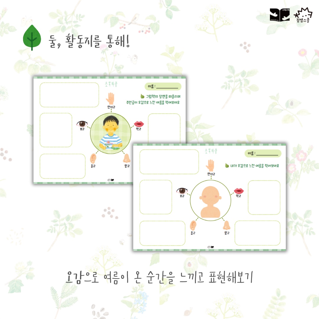 상상하고 친구들과 의견을 나누다보면 자연스레 모든 감각이 깨어나요.
