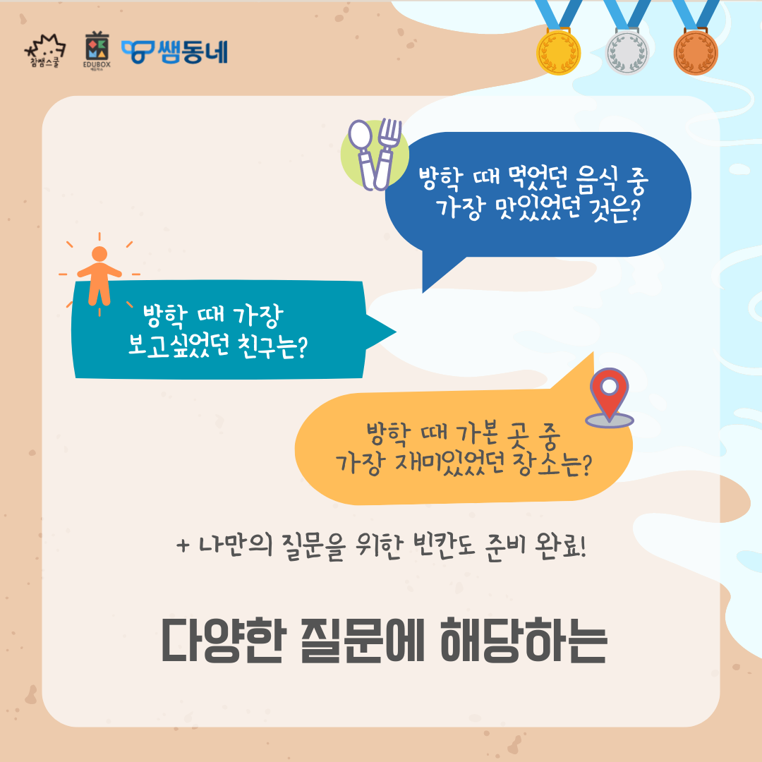 즐거웠던 여름방학을 돌아보며, 다양한 질문에 해당하는 나만의 1,2,3위를 기억해보세요!
