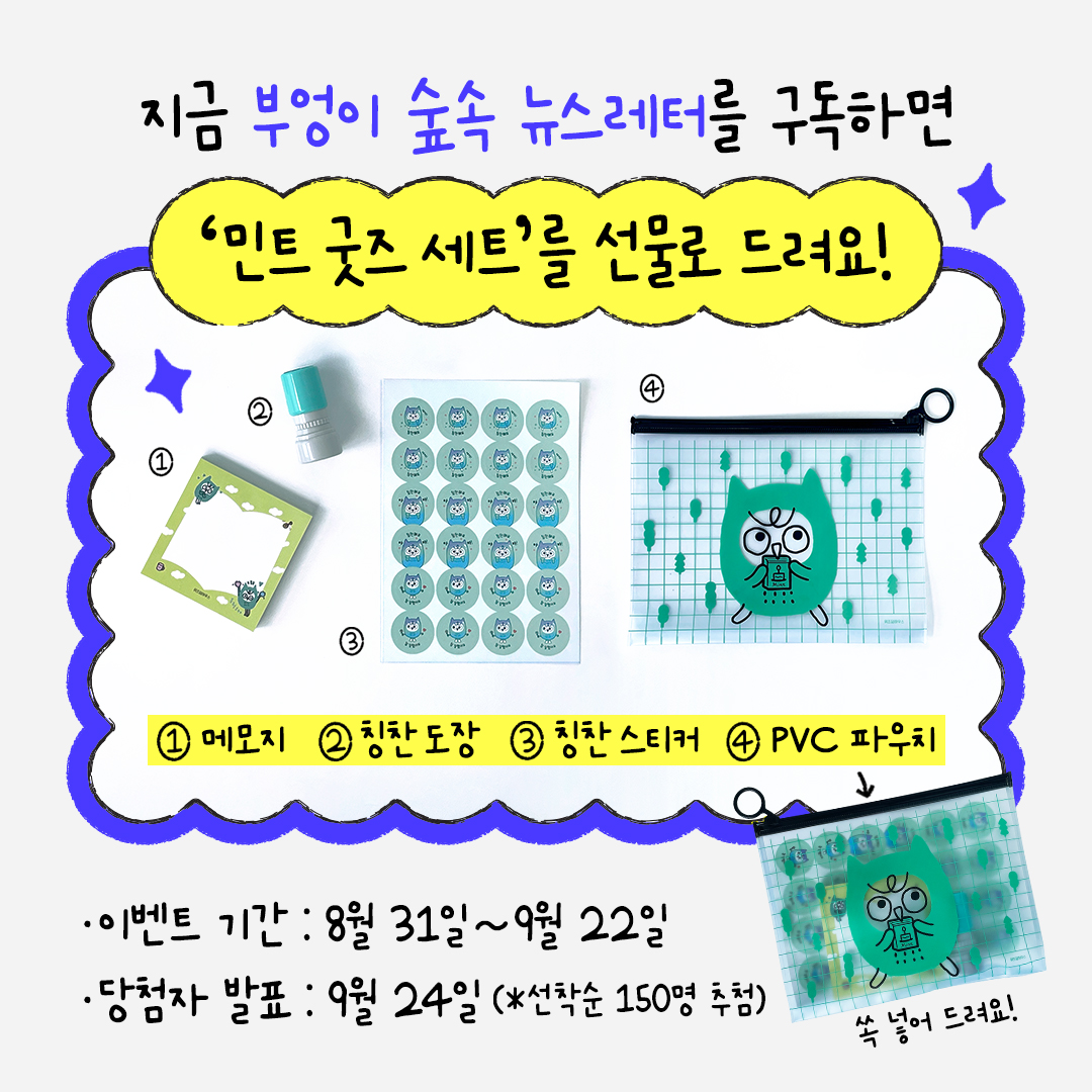 ✔ 당첨 선물 : 부엉이 숲속 민트 굿즈 4종 SET
