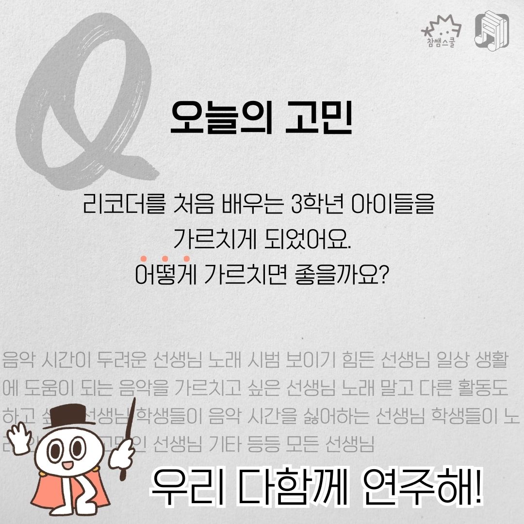 리코더를 처음 배우는 3학년 학생들의 담임 선생님들을 위해 여러 선생님들의 자료를 활용한 소소한 수업사례를 공유합니다! 함께 배우고 가르치며 선생님들만의 수업을 만들어가요😚