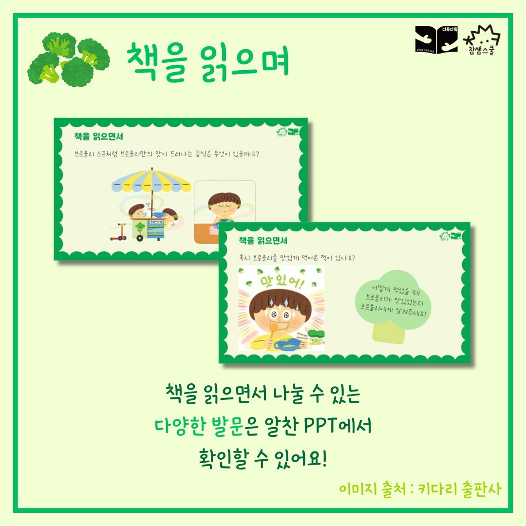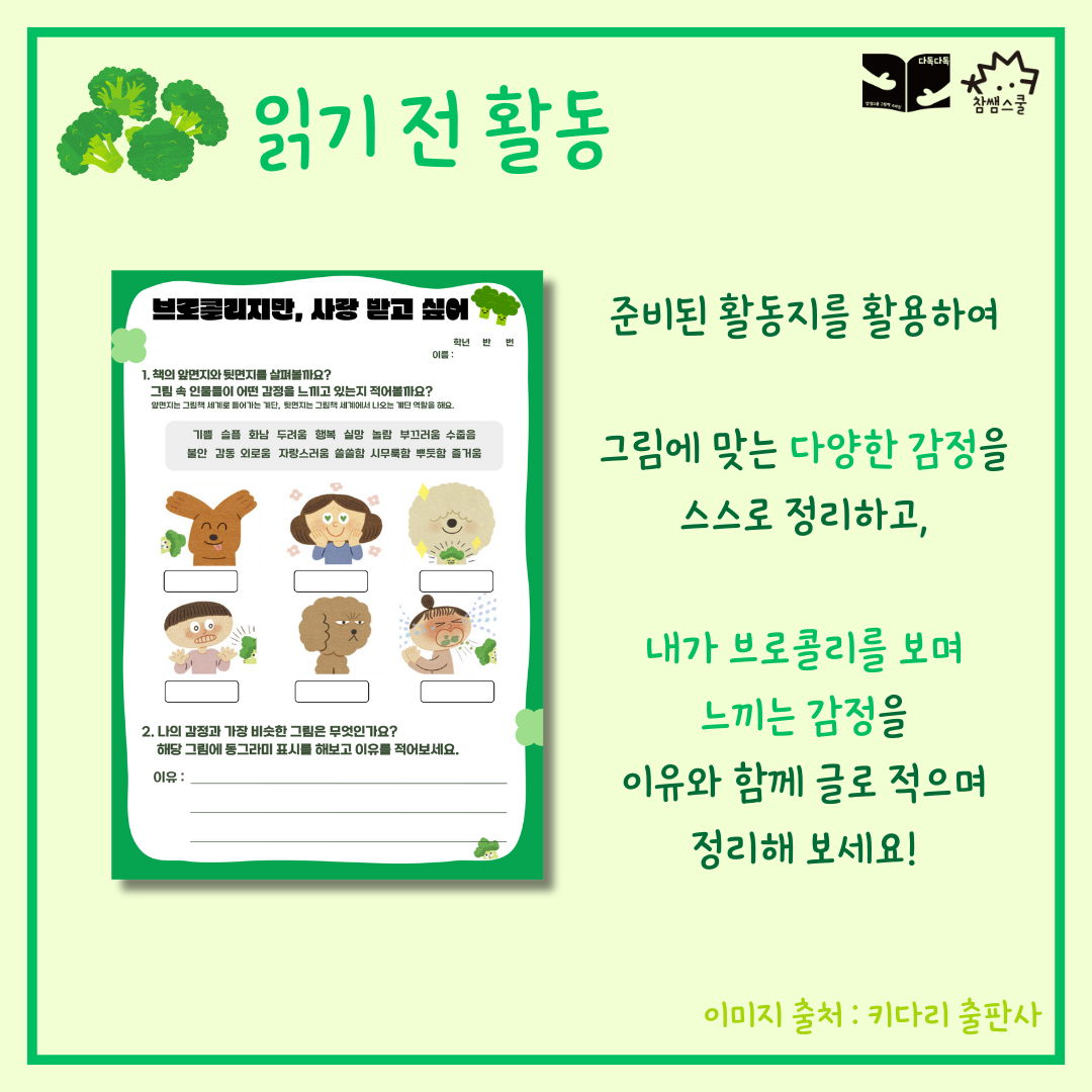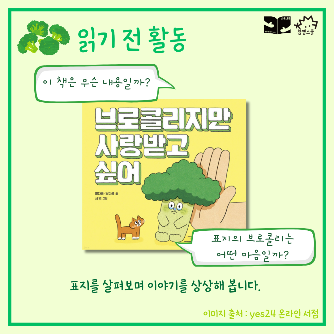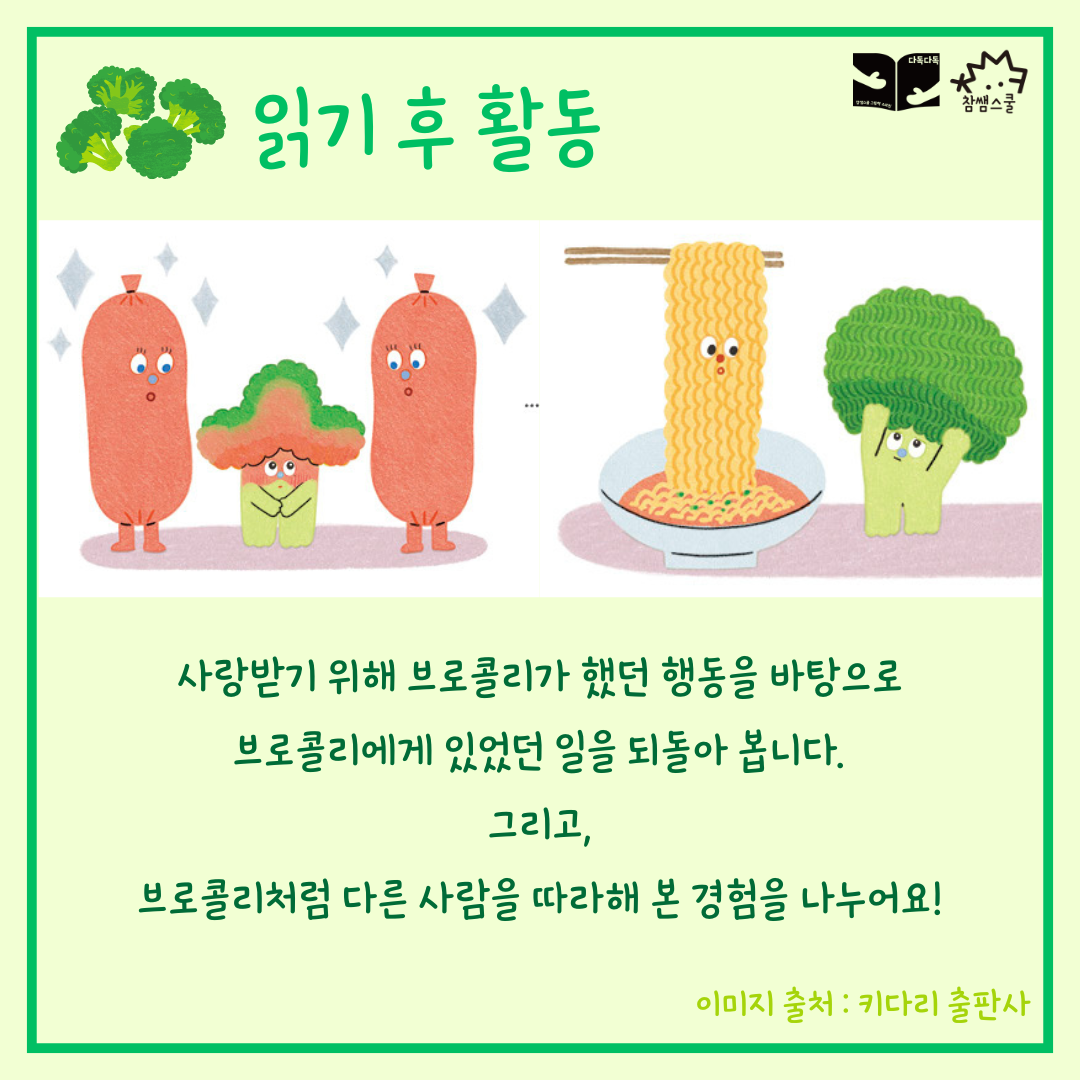 🥦 브로콜리는 사랑받기 위해 어떤 일들을 했을까요? 나는 브로콜리를 맛있게 먹어본 적이 있나요? 책을 읽으며 경험을 나누어요.