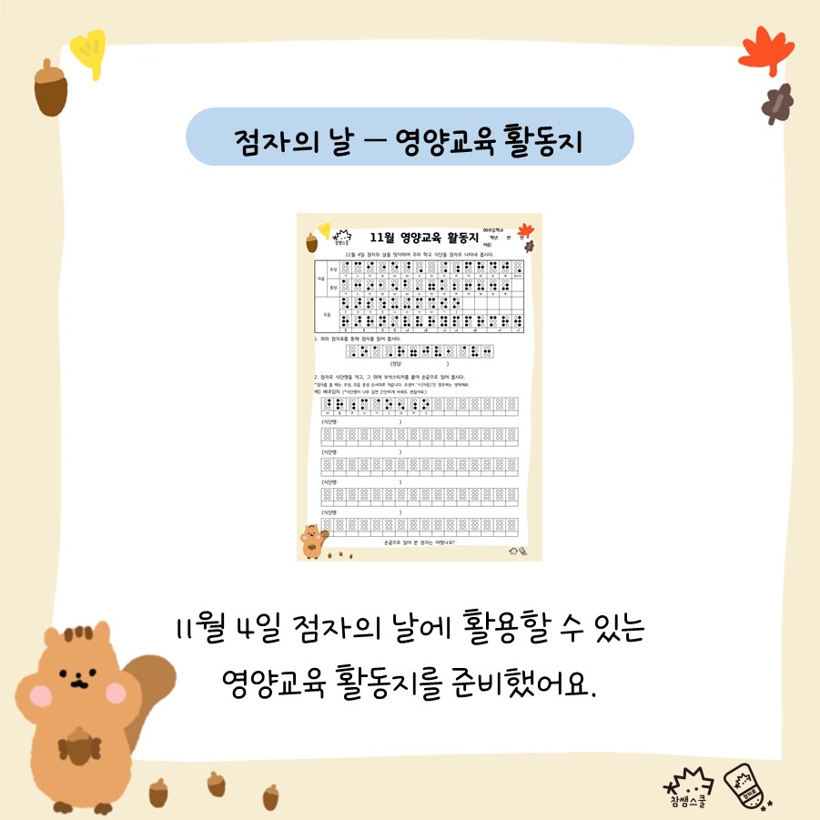 👩🦯 11월 영양교육 활동지는 11월 4일은 점자의 날에 활용 할 수 있어요.