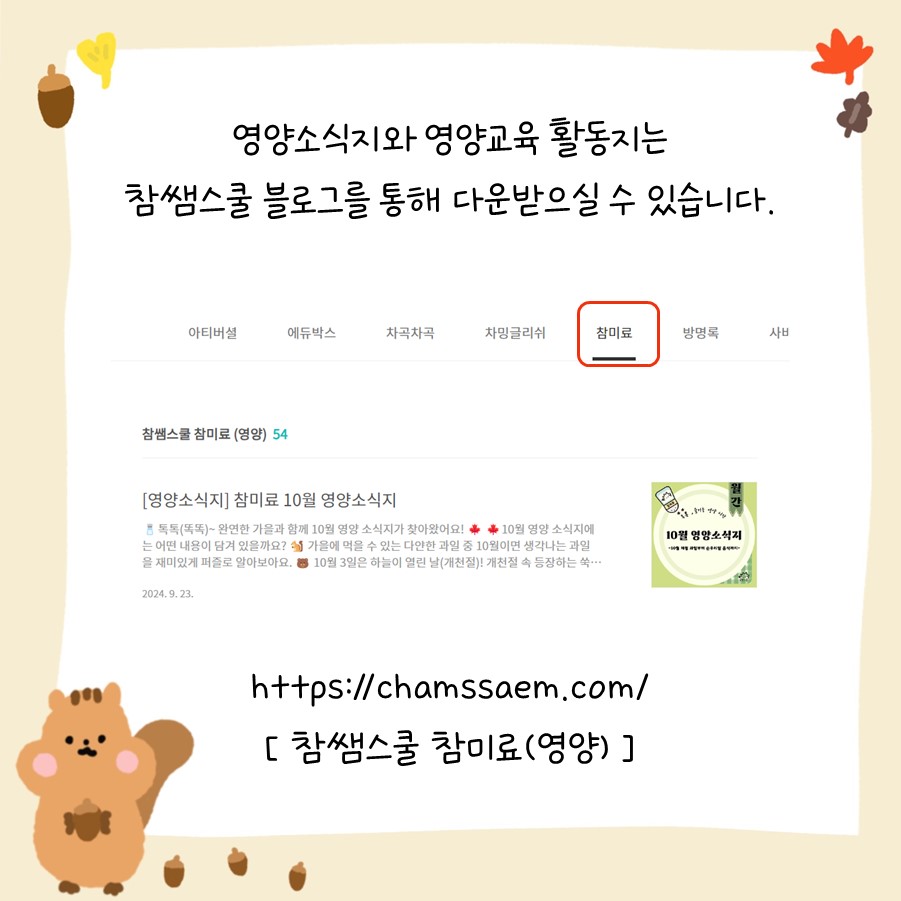 | [영양소식지] 참미료 10월 영양소식지 (8) | 2024.09.23 |
