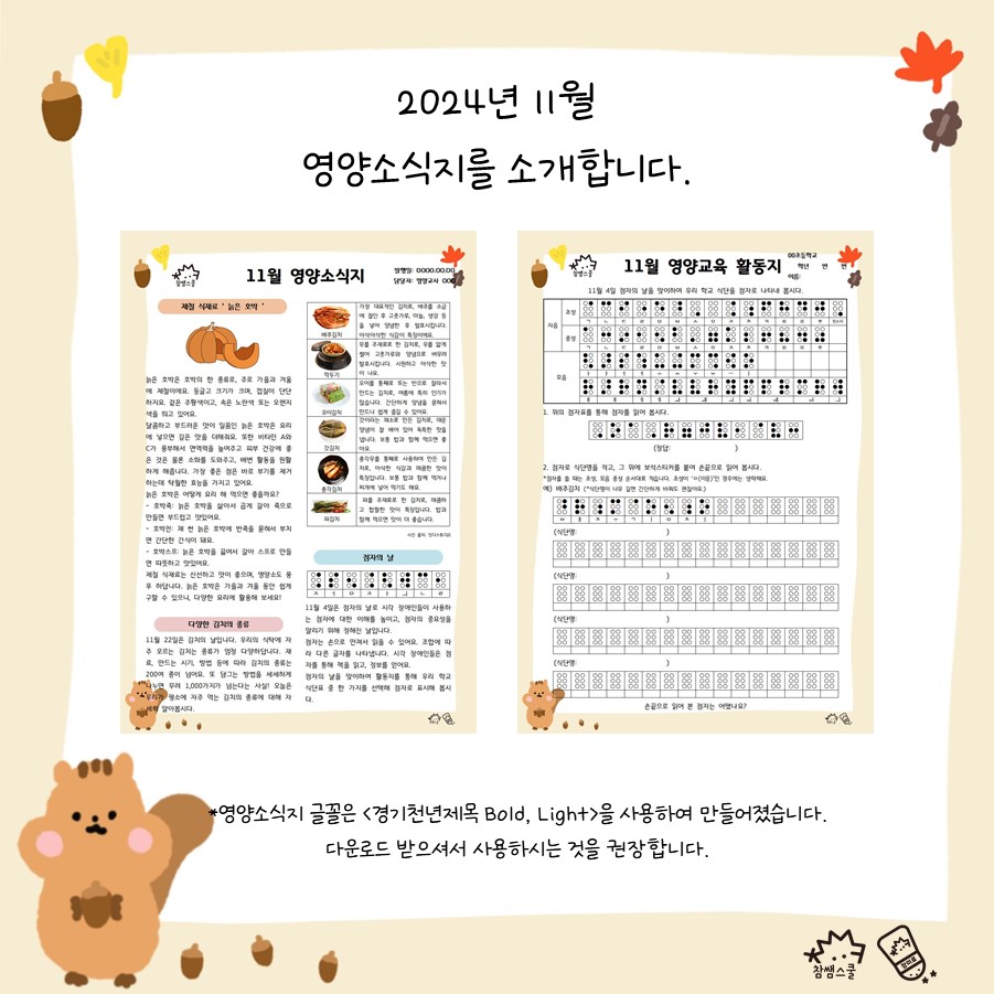 🧂톡톡(똑똑)~ 11월 영양 소식지가 찾아왔어요! 🍁