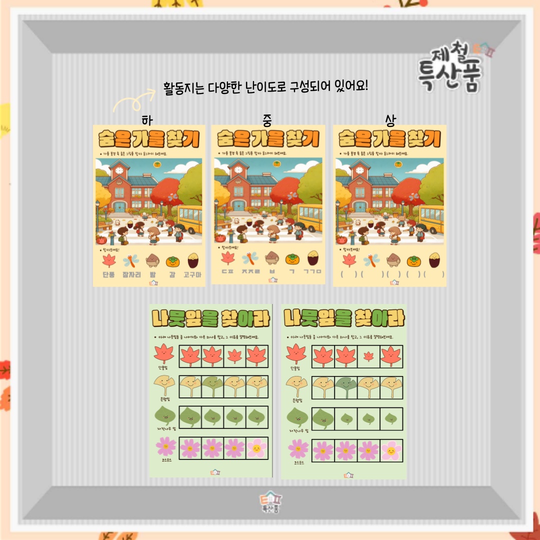 특산품에서 준비한 가을 활동지로, 가을의 다양한 모습들을 재미있게 배워볼 수 있어요! 🍠