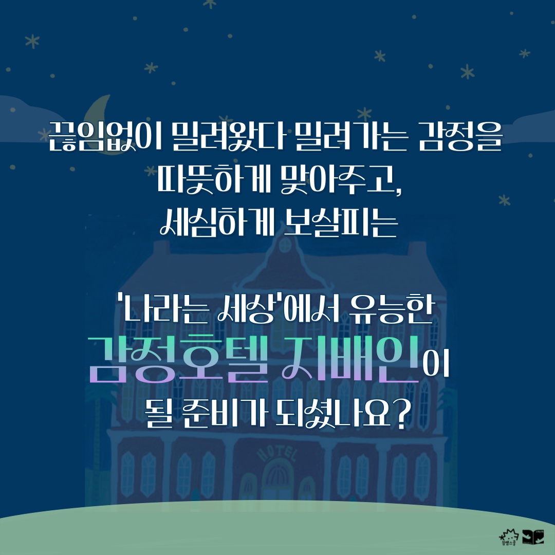 우리 모두 마음 속에 감정호텔을 품고 있어요. 그런데, 나는 내 감정호텔에 찾아오는 감정들을 잘 알고 다루고 있나요?