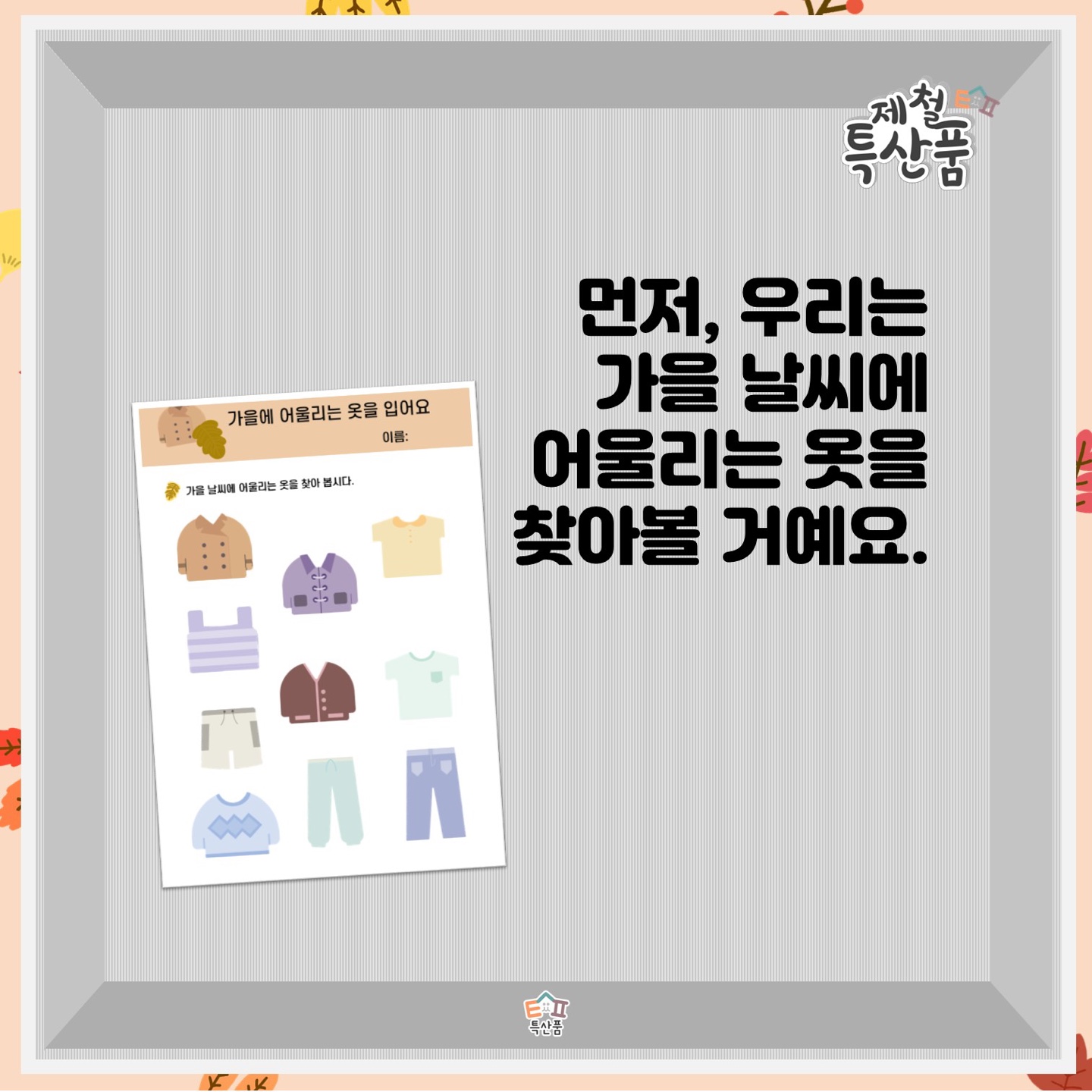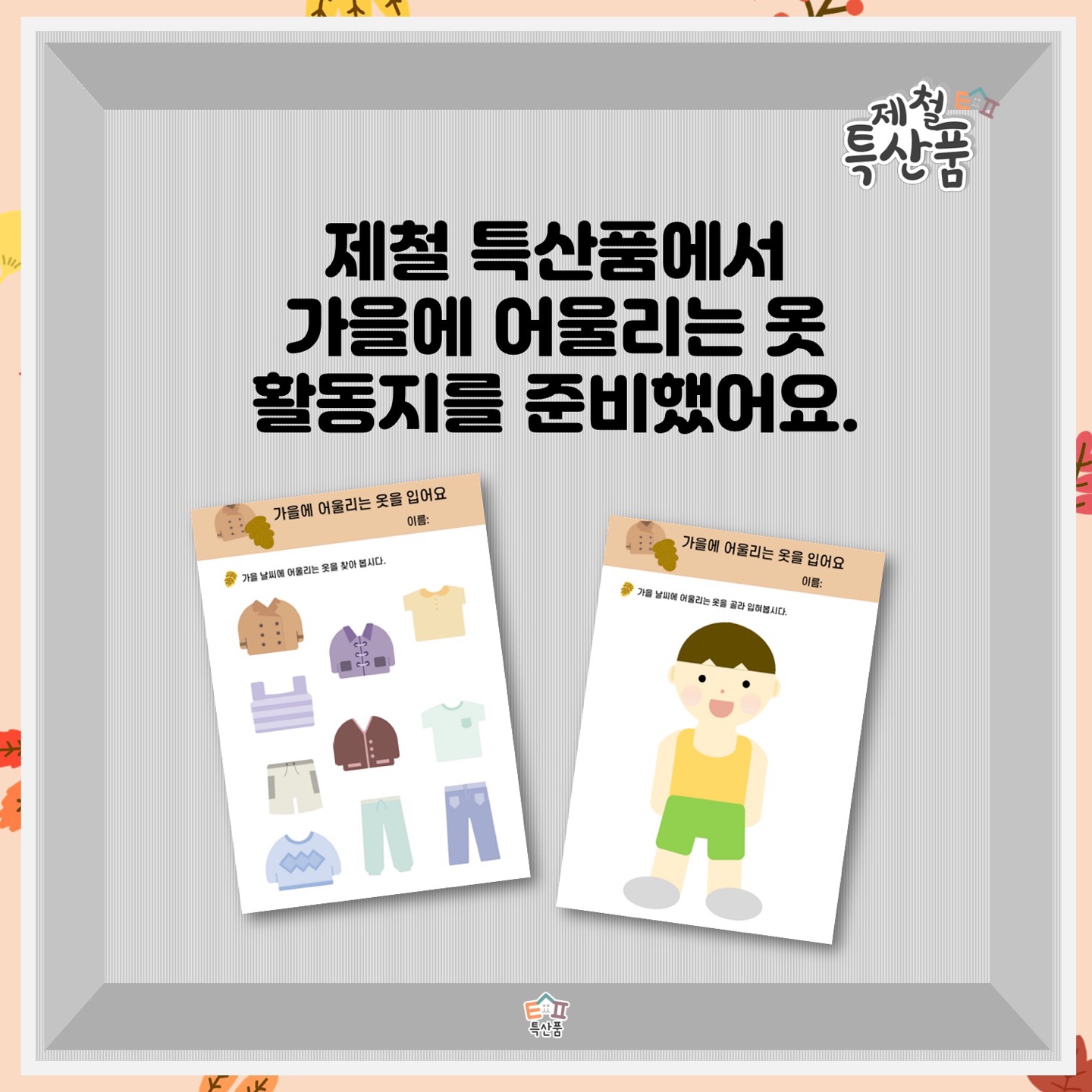 🍁제철 특산품에서 가을에 어울리는 옷 활동지를 준비했어요.🍁